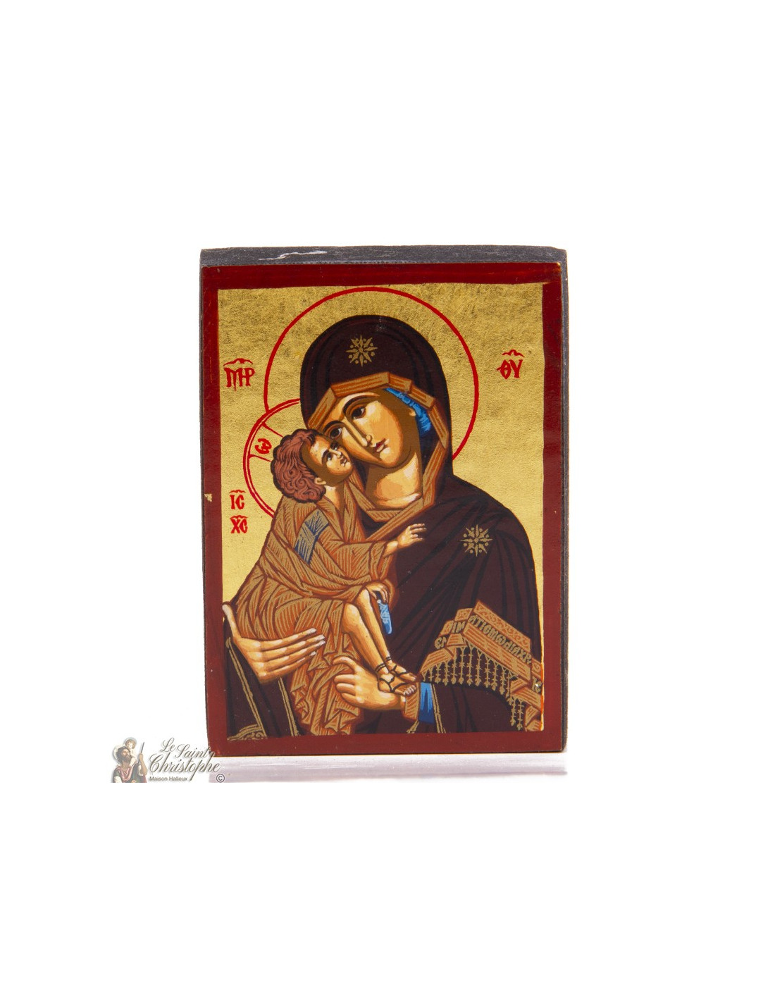 Questa icona ortodossa raffigura la Vergine della Tenerezza, o Glykophilousa, una delle figure più commoventi della tradizione bizantina. Maria abbraccia teneramente Gesù Bambino, con i volti uniti in un gesto di puro amore materno. Lo sfondo dorato cattura la luce e sublima questa dolce scena. Eseguita su legno, questa icona è un invito alla contemplazione, alla preghiera silenziosa o un regalo significativo.