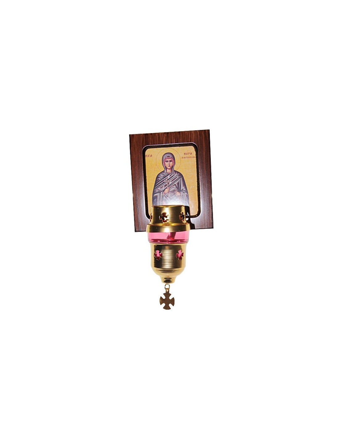 Questa tradizionale icona ortodossa da parete raffigura Santa Maria Maddalena, simbolo di pace e presenza divina. La cornice in finto legno presenta una lampada a olio sospesa in metallo dorato con un contenitore in vetro rosso. Da appendere alla parete, invita alla preghiera e alla meditazione in uno spirito di tradizione e contemplazione.