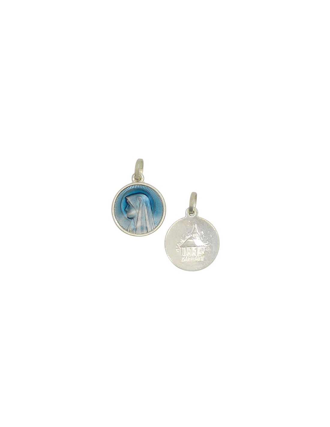 Medaglia della Vergine dei Poveri di Banneux, Nostra Signora e della piccola cappella costruita in suo onore, in metallo argentato e smalto blu. Questo delicato ciondolo è un gioiello intriso di spiritualità, ricordo di un luogo di apparizione mariana, oggi meta di pellegrinaggio grazie alla fonte miracolosa che ha guarito numerosi mali. Un perfetto ricordo di questo luogo santo o come protezione e grazia della Santa Vergine.
