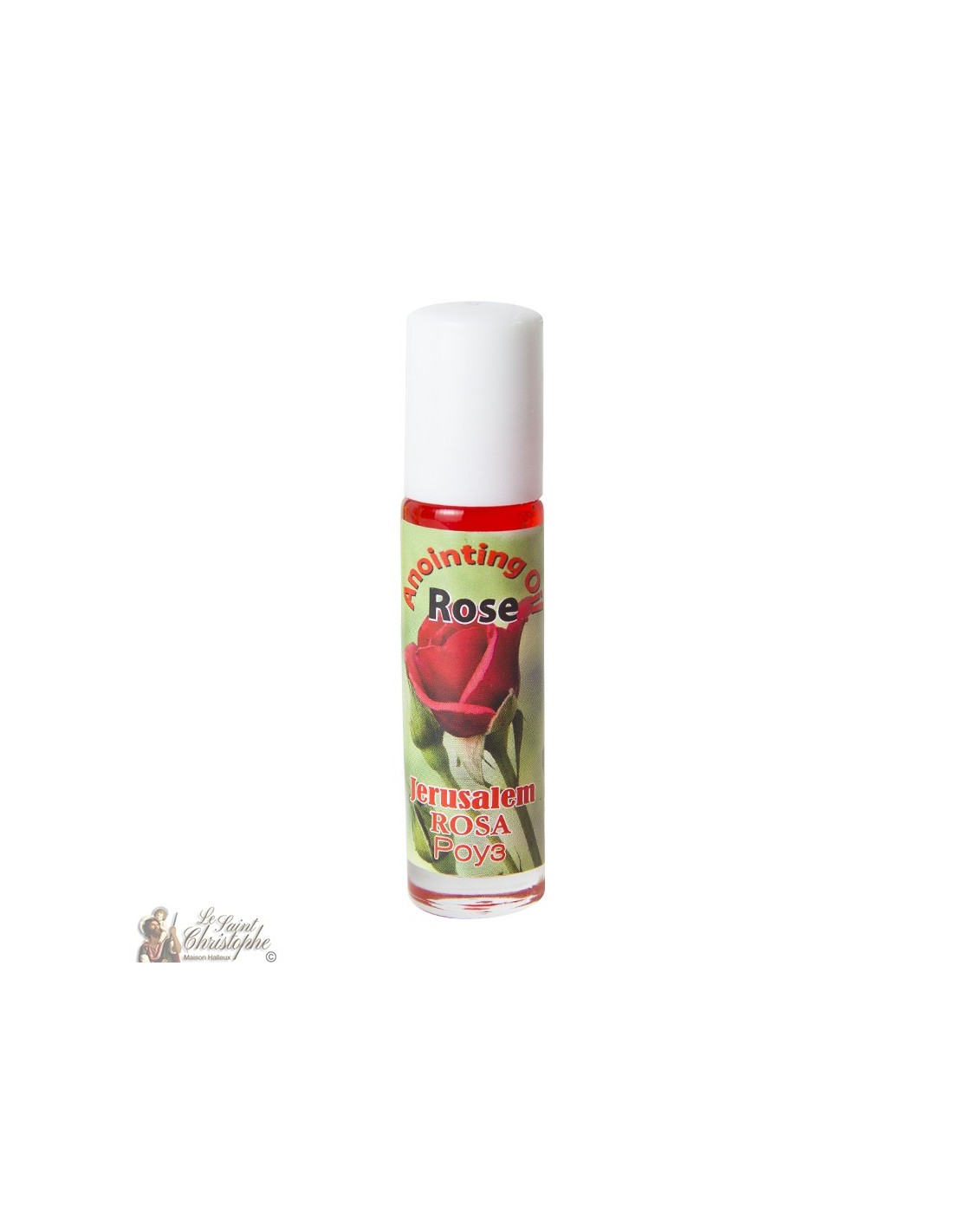 Olio per unzioni al profumo di rosa di alta qualità importato da Gerusalemme. Utile per chi lavora in chiesa o per benedire e proteggere se stessi e i propri cari.