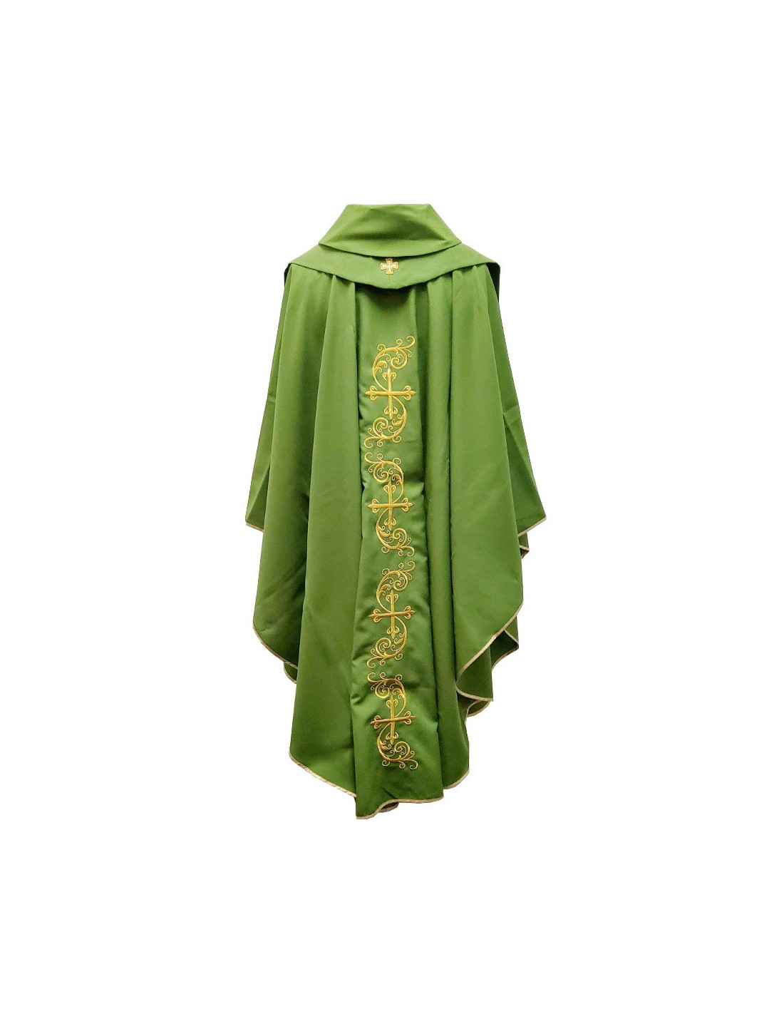 Casula sacerdotale verde con elegante ricamo a croce e raffinato bordo in filo d'oro, con stola coordinata inclusa. Ideale per celebrazioni formali e per l'uso quotidiano.