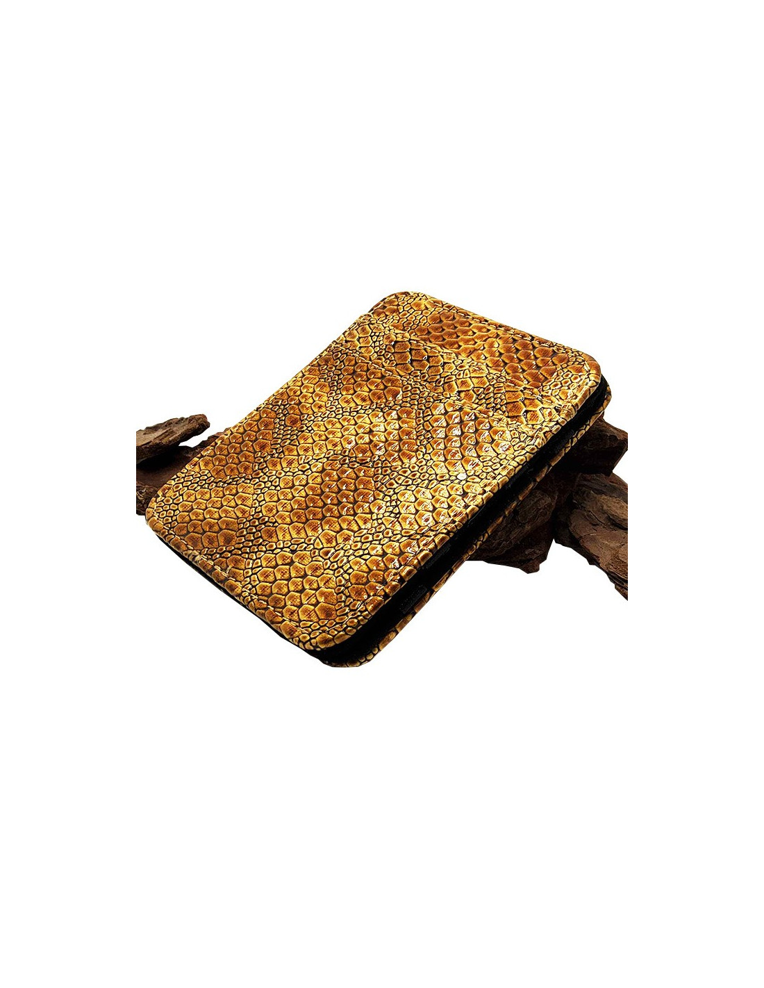 Porta biglietti e carte di credito in similpelle dorata effetto serpente