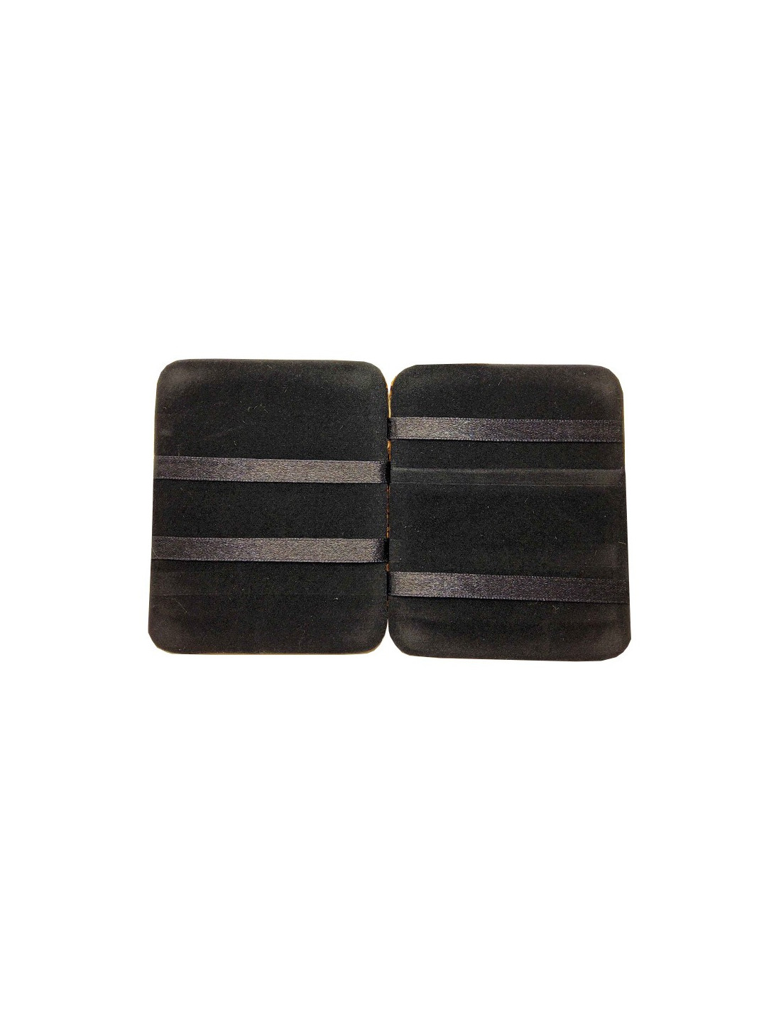 Questo portacarte e banconote unisce eleganza e praticità grazie alla sua similpelle dorata con effetto squamato. Si apre su entrambi i lati e ha un interno in velluto nero con nastri per fissare le carte e i biglietti. Un accessorio raffinato e funzionale.