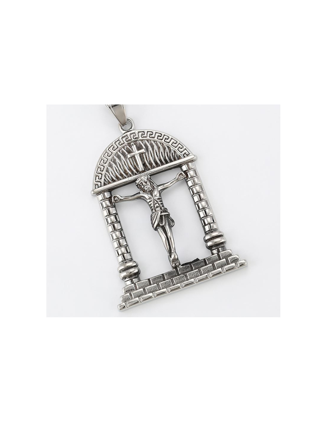 Grande medaglia di San Giuseppe in acciaio inossidabile con catena – Diametro 44 mm