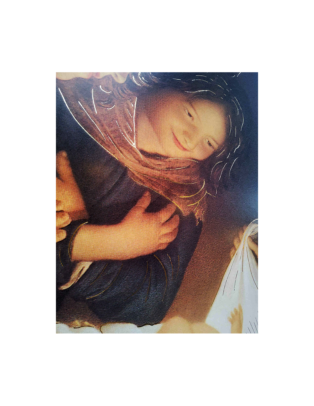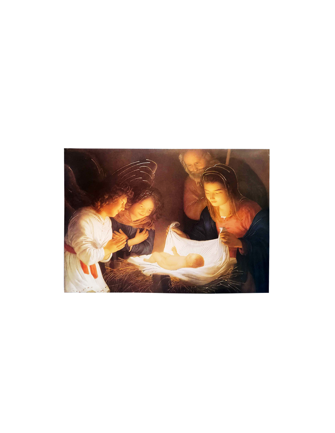 Immergiti nella dolcezza e nella luce del Natale con questo splendido poster che raffigura la Sacra Famiglia circondata dagli angeli.