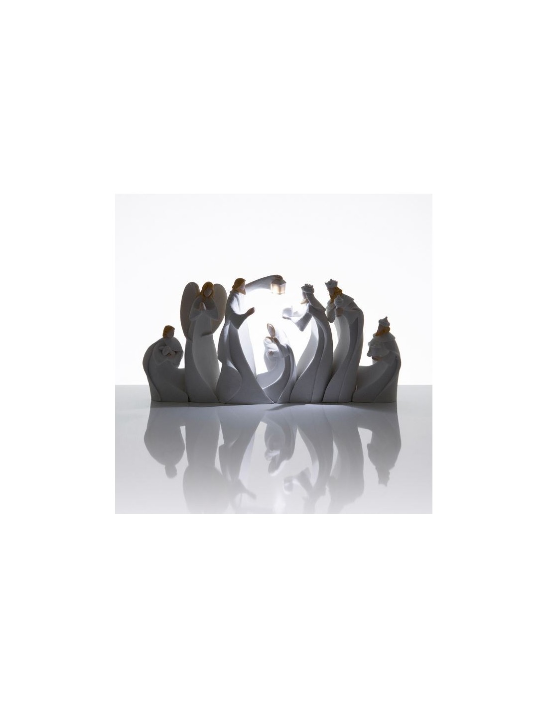 Riscopri la magia del Natale con questo presepe moderno in resina bianca.
