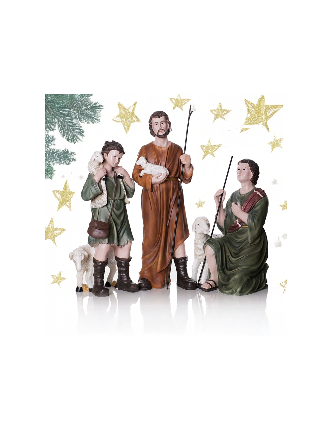 Splendido set di 3 pastori con pecore in resina, perfetto per presepi di grandi dimensioni o decorazioni natalizie da esterno.