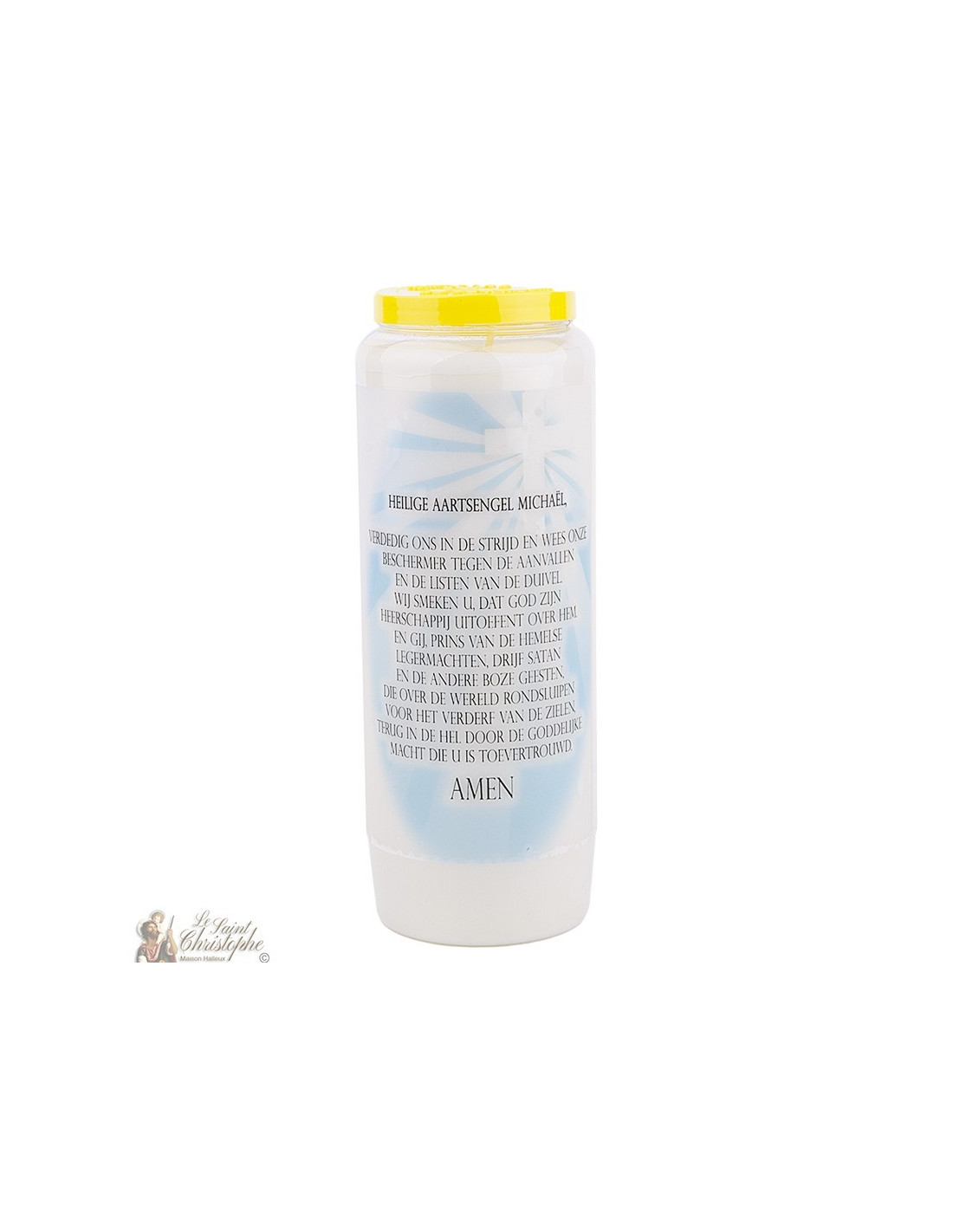 Candela novena vegetale con immagine di San Michele e profumo di salvia. Una combinazione perfetta per la purificazione.