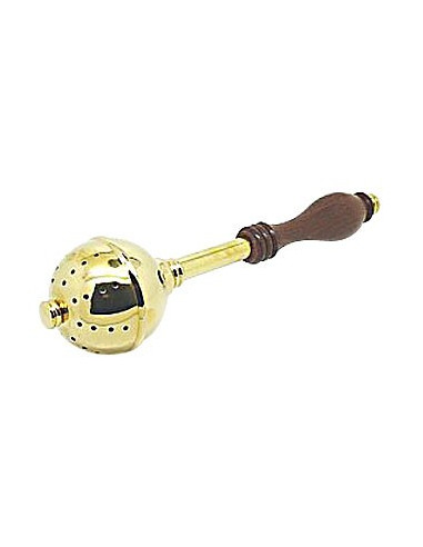 Spugna in ottone dorato con manico in legno, fatta a mano. Il suo design sobrio si abbina a qualsiasi altro strumento di celebrazione di massa.