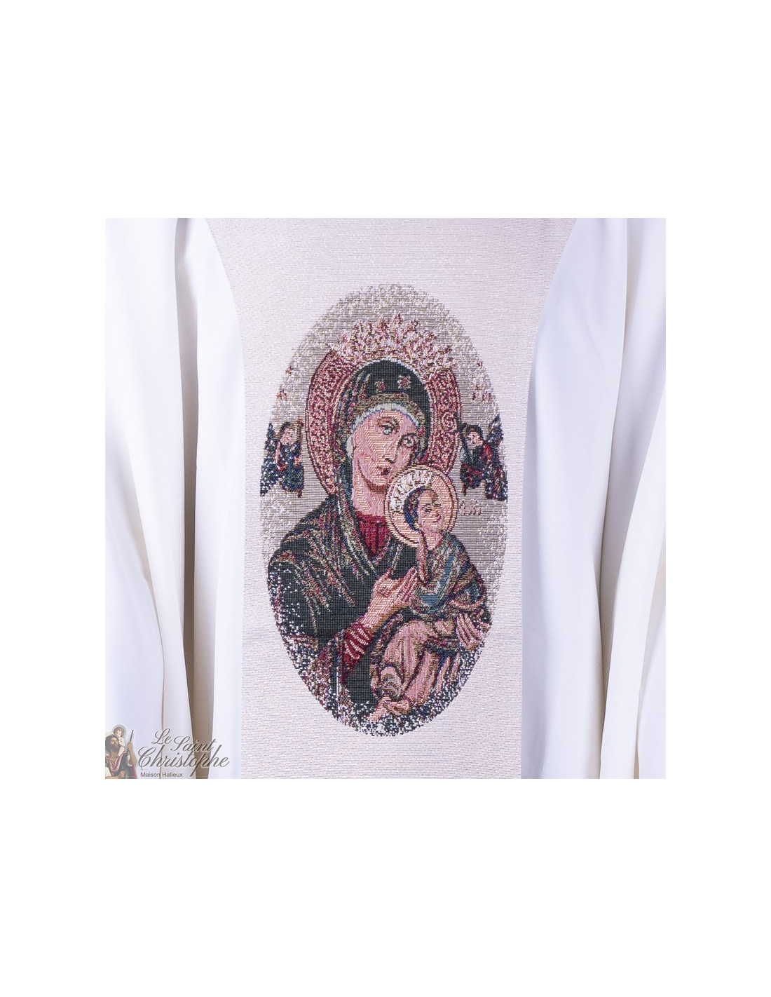 -50% Stola Stola del sacerdote ricamato San Michel Arcangelo 15651 122,50 € 245,00 € Stola sacerdotale ricamata con l'arcangelo San Michele sul lato destro e una croce sul lato sinistro. Il ricamo è tessuto nello stile degli arazzi di Bruges. La lunghezza dalla schiena alla fine del pannello è di 142 cm. La lunghezza dal collo al ginocchio è di 106 cm. Aggiungi al carrello