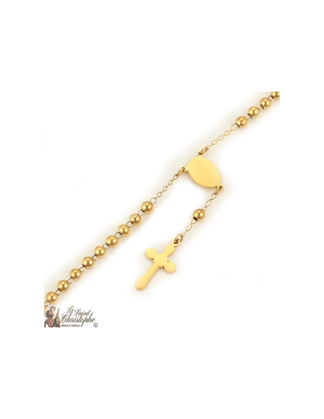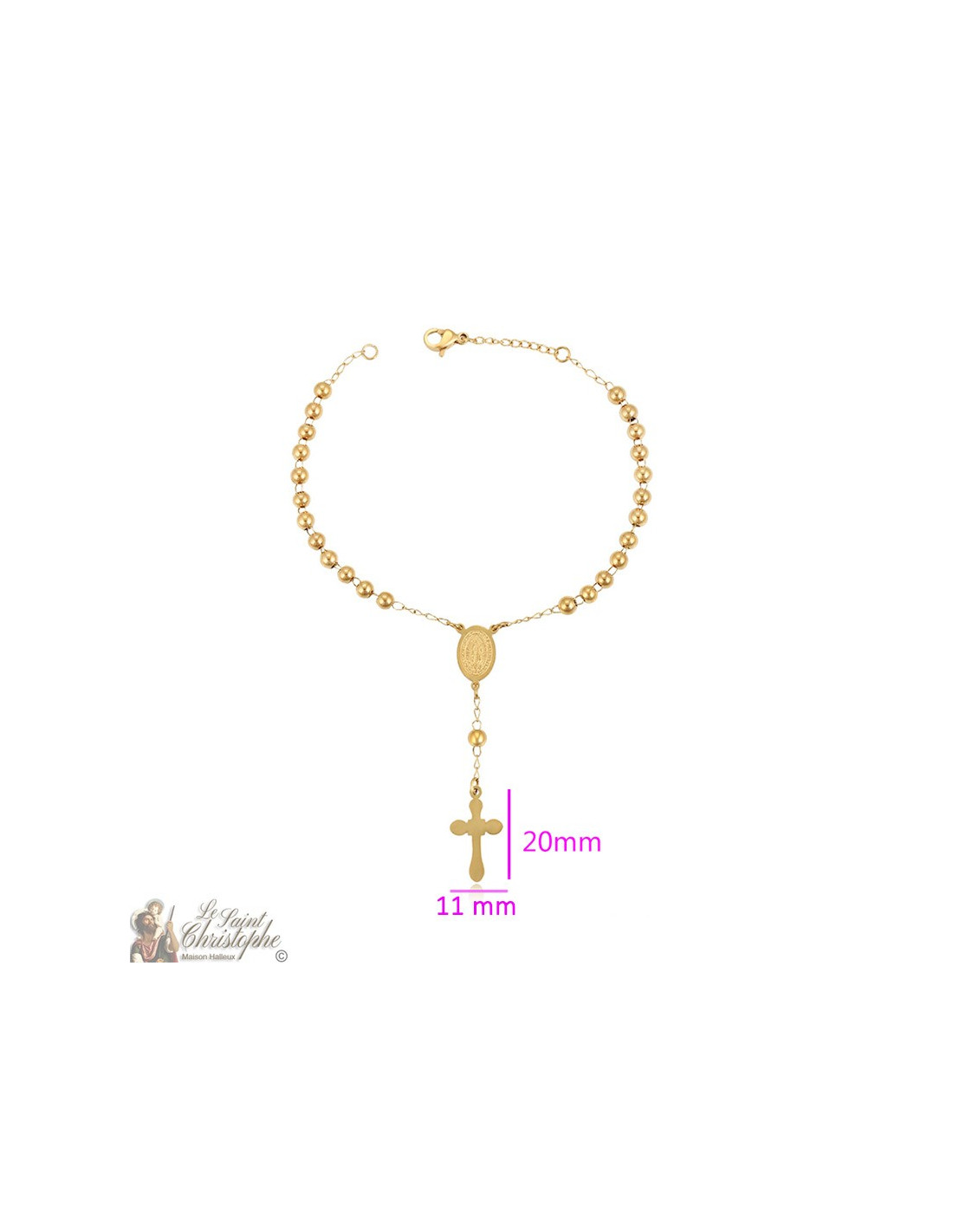 Armband die kan worden gebruikt als dizainier, dankzij de parels en de charme. Het kruis is fijn gebeiteld en de medaille stelt een heilige voor, omringd door lauweren.