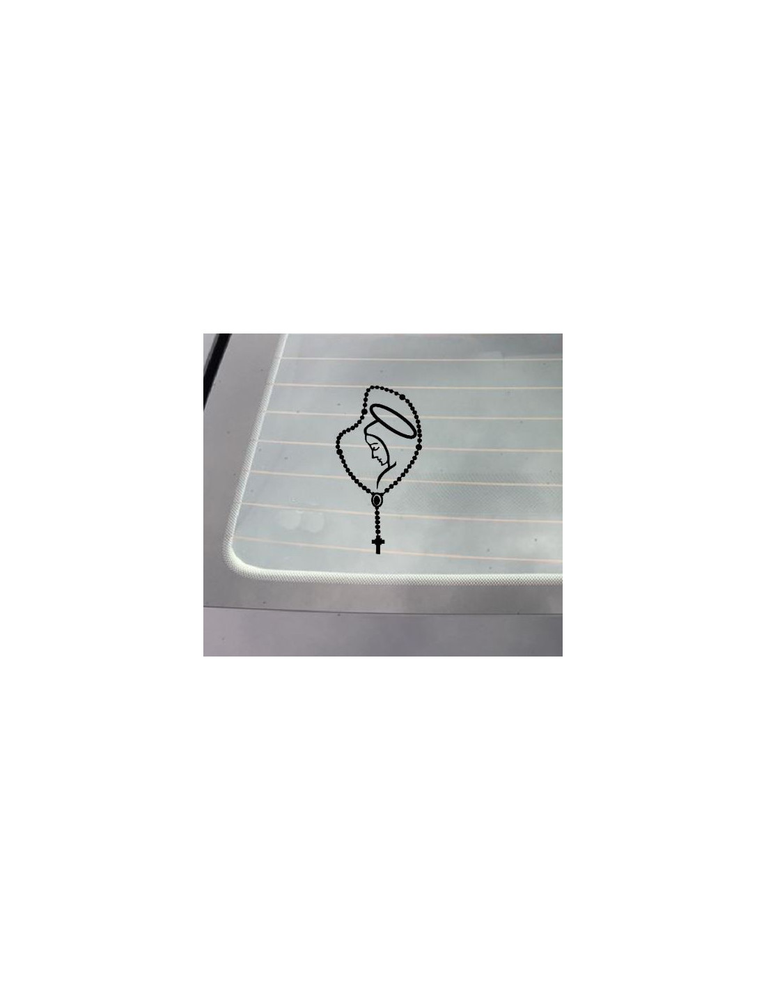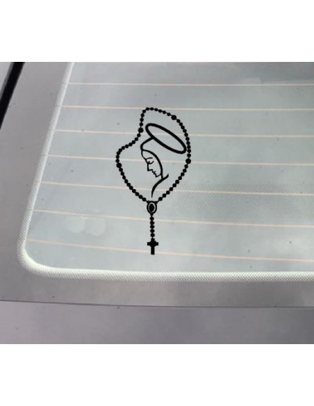Sticker met rozenkrans en Maagd Maria voor auto, raam of andere voorwerpen