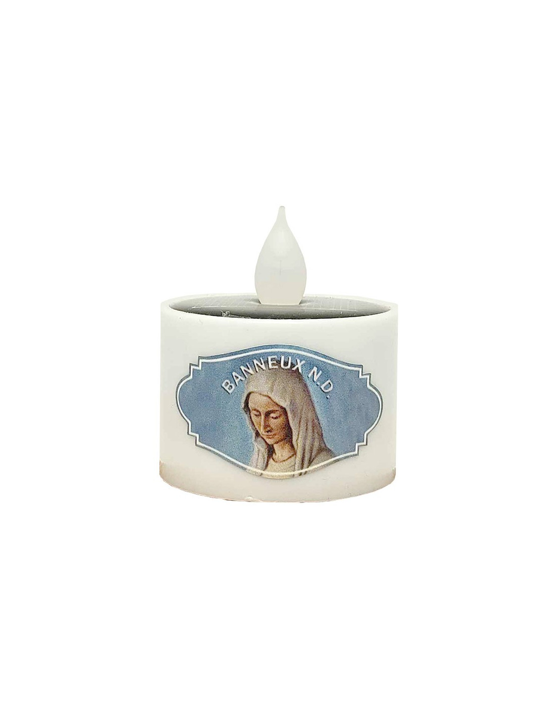 LED-kaars op zonne-energie met de afbeelding van de Maagd der Armen van Banneux Notre-Dame