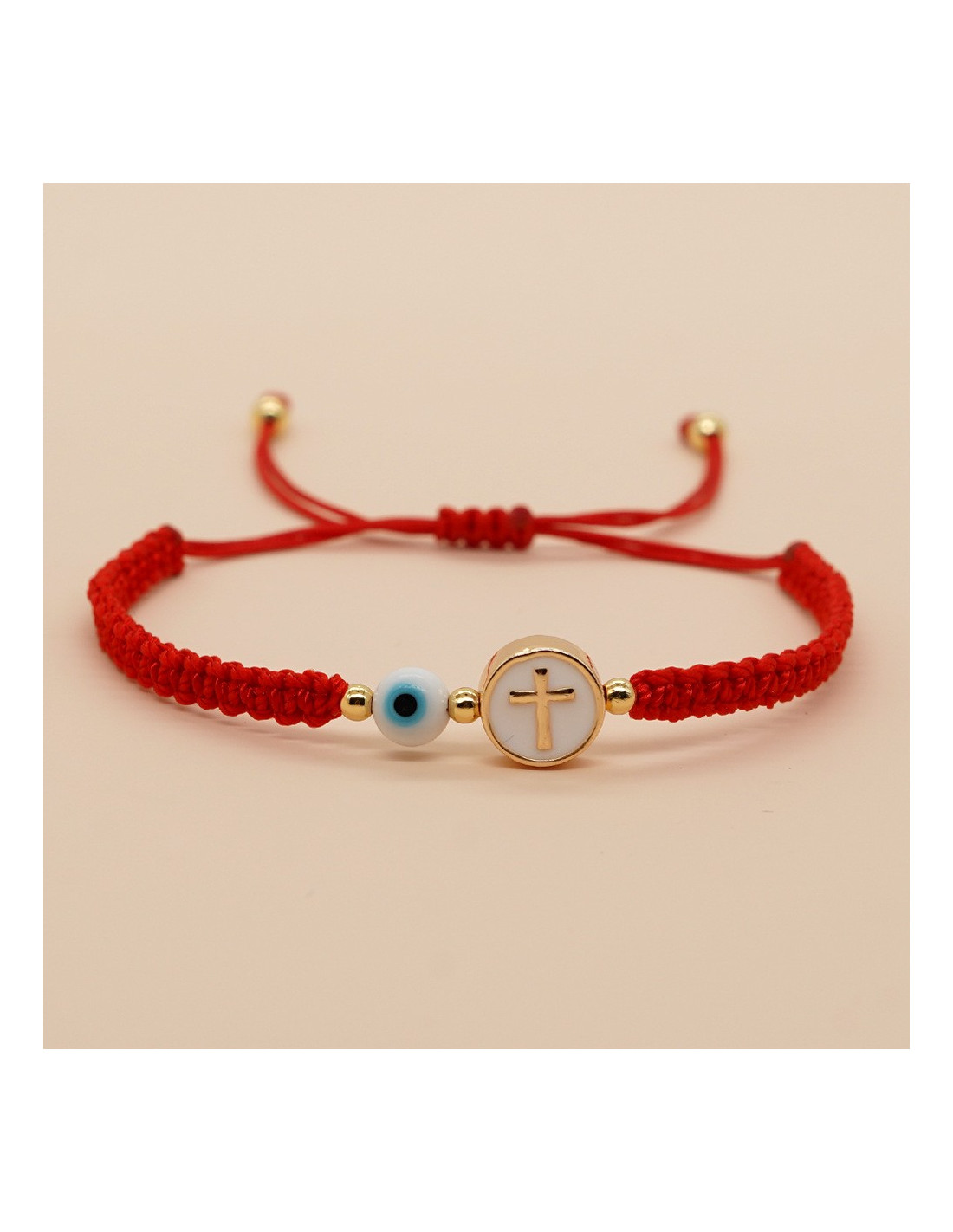 Deze handgeweven geluksbrenger staat voor de universele waarden van eenheid, acceptatie en integriteit. Rood is de kleur van geluk en geluk. Met een parel om het boze oog af te weren en een klein gouden en wit kruis is het een chique, trendy sieraad met een symbool van bescherming en geluk.