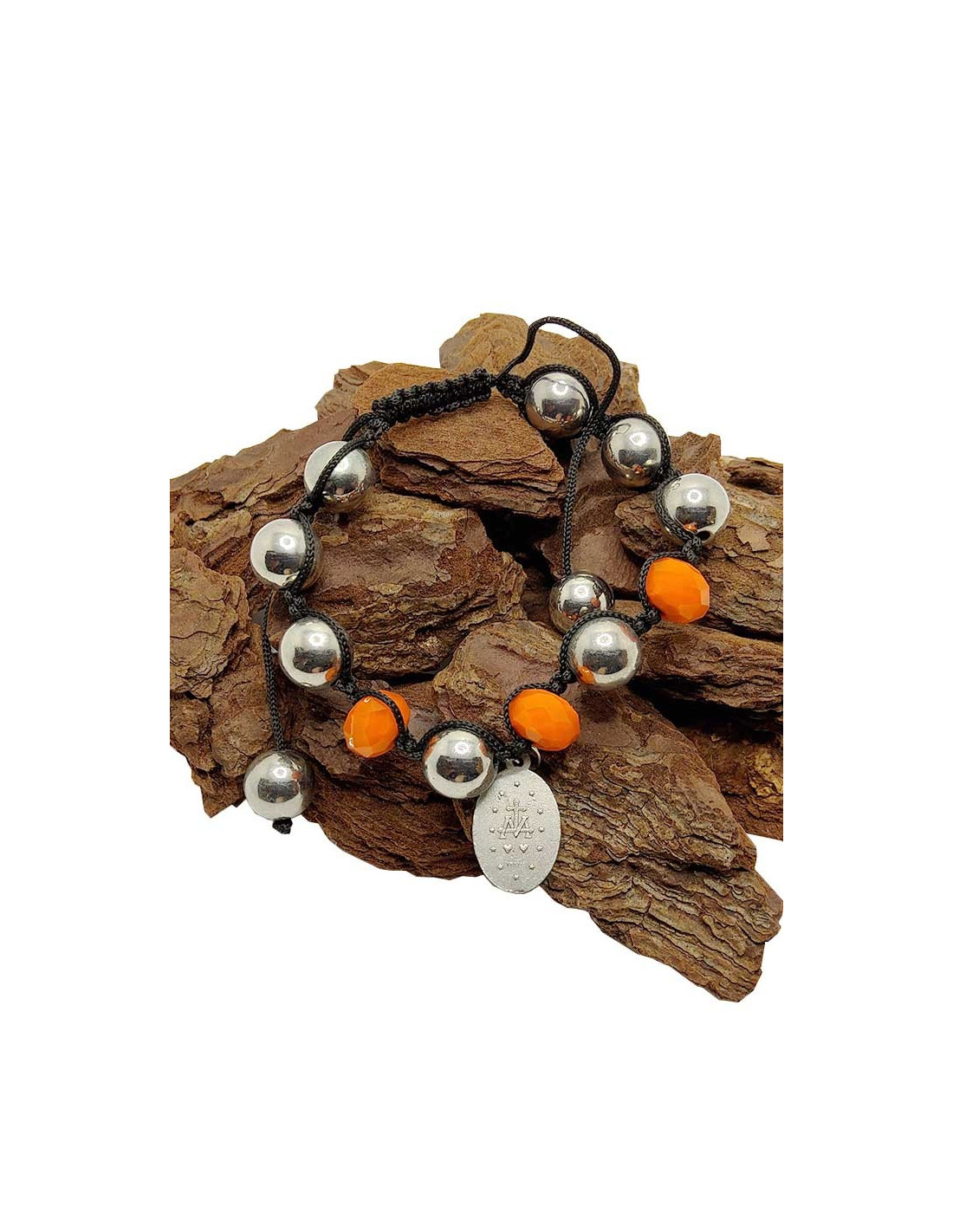 Deze shamballa armband combineert esthetiek en spiritualiteit. Gemonteerd aan een verstelbaar zwart koord, combineert hij glanzend grijze kralen met metallic effect en gefacetteerde oranje kralen. Hij is versierd met een decoratieve metalen medaille die de Wonderdadige Maagd voorstelt. Deze medaille staat symbool voor goddelijke bescherming. Hij wordt gedragen om genade of steun te vragen in moeilijke tijden. Een inspirerende en inspirerende armband, zowel modern als betekenisvol. Deze unisex armband is verstelbaar dankzij de macraméknopen, waardoor hij geschikt is voor zowel grote als kleine polsen!