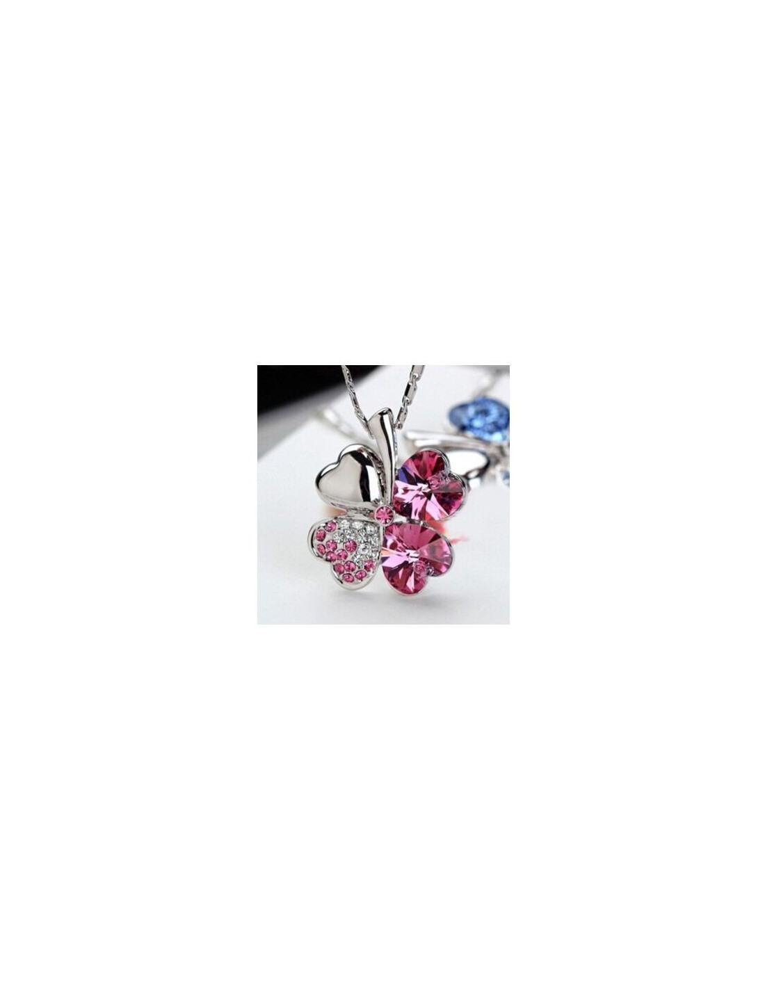 Deze geluksbrenger heeft een hanger in de vorm van een klavertje 4, een symbool van geluk en hoop. Gemaakt van verzilverd metaal en versierd met fonkelende roze en witte kristallen. De zorgvuldige, lood- en nikkelvrije afwerking is geschikt voor de gevoelige huid. Dankzij de handgemaakte galvanisatie valt dit sieraad op door zijn verfijnde schittering. Een trendy, inspirerend accessoire om cadeau te geven of elke dag te dragen.