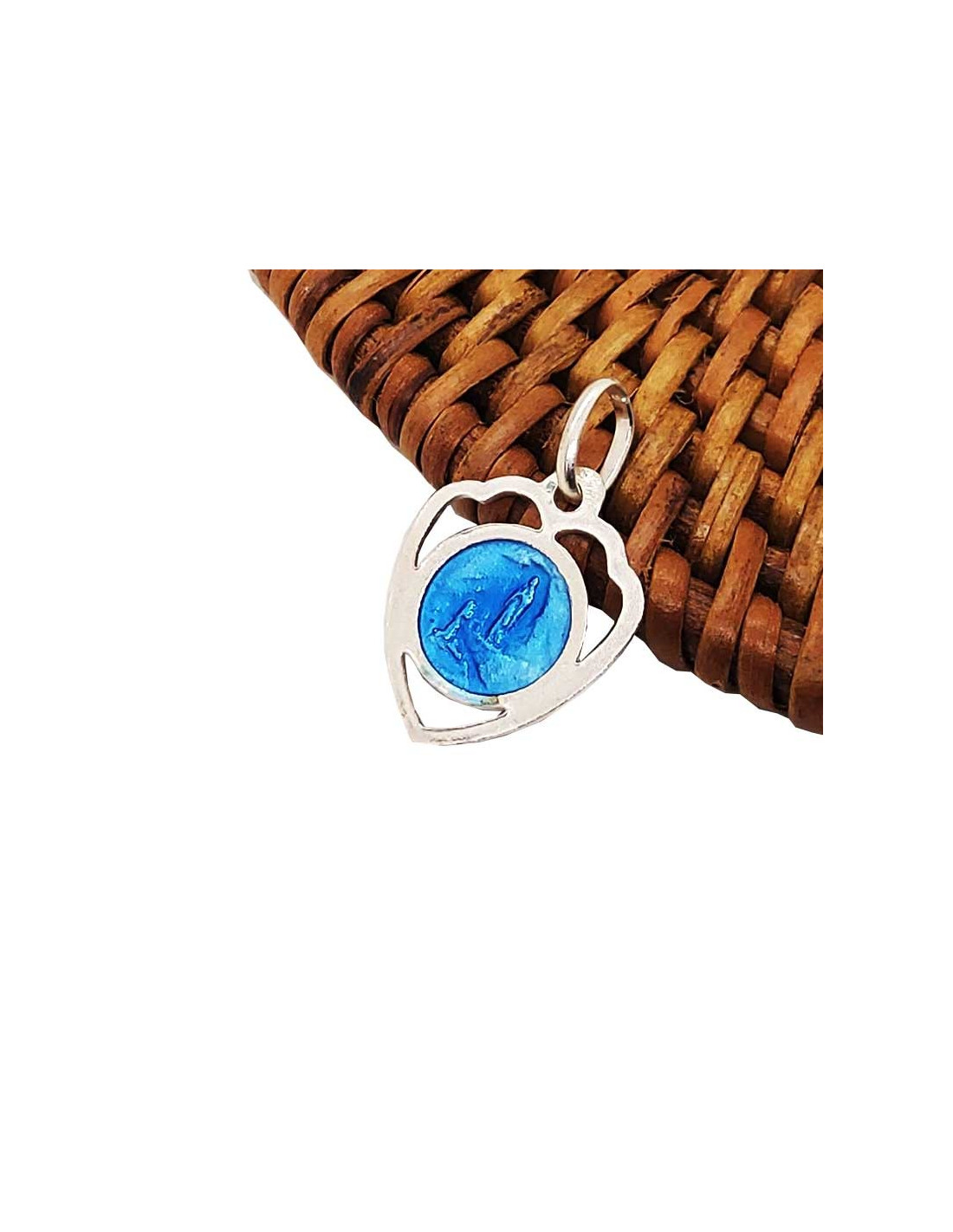 Hartvormige medaille van de Maagd Maria en Onze-Lieve-Vrouw van Lourdes - blauw email