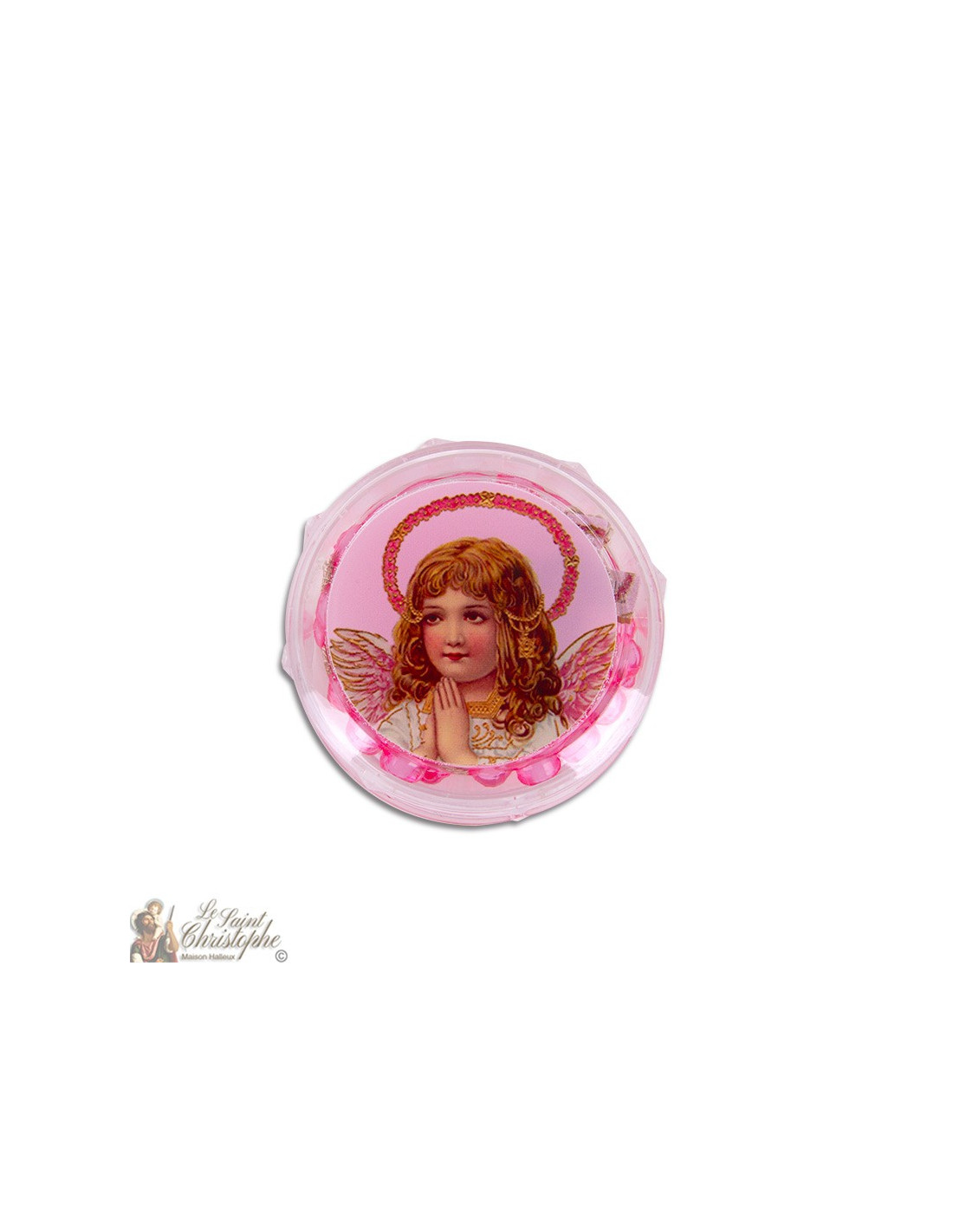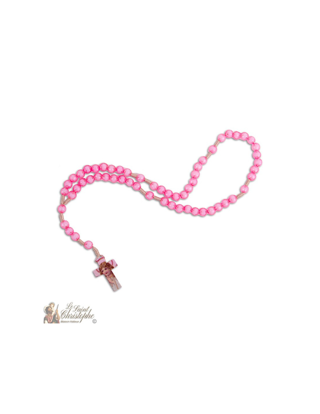 Gebedssnoer Beschermende engelenrozenkrans met zijn geschenkdoosje 10344-rose-2 € 5,00 Touw rozenkrans met plastic kralen.Houten kruis met het bord Pax (Vrede). Dit model is zeer populair bij kleine kinderen Kralen: 6 mm Lengte: 32 cm In winkelwagen