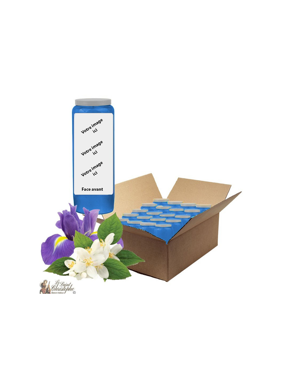 Donkerblauwe noveenkaars met jasmijn-iris geur - personaliseerbaar - doos 20 stuks