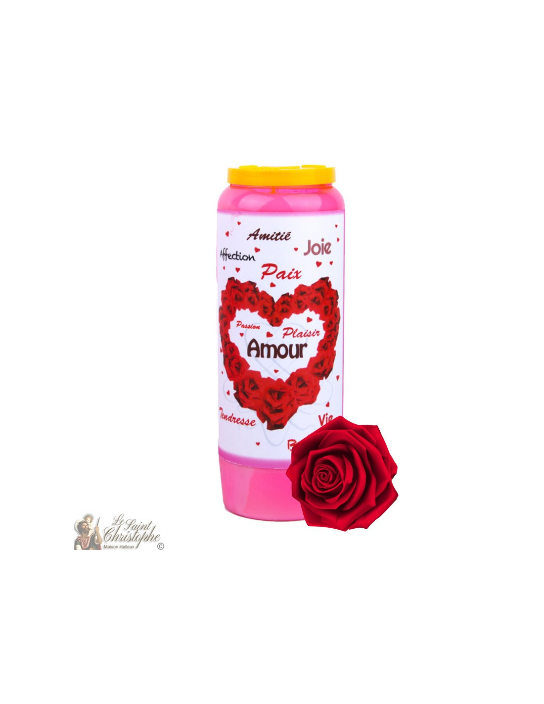 Plantaardige Novena Candle met Valentijnsdag foto en tekst op de rug in de taal van uw keuze. Een hulp om je Liefde te versterken of om jezelf ermee te omringen.