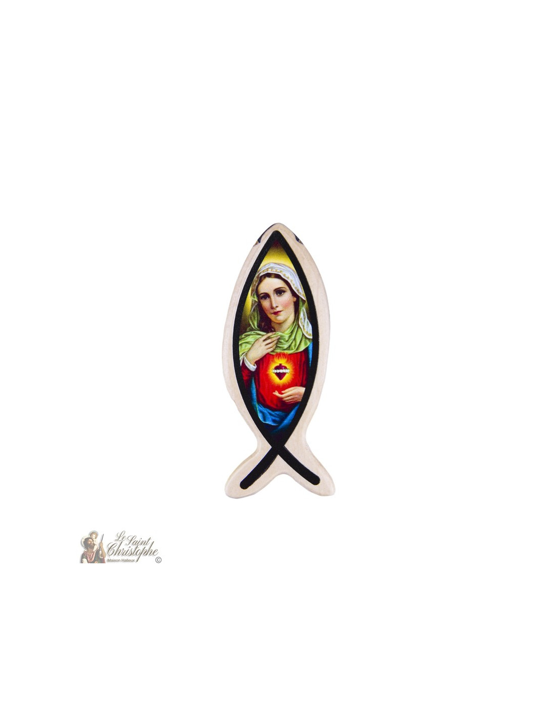 Bellissimo pesce di legno (segno cristiano) con 2 immagini su due lati.