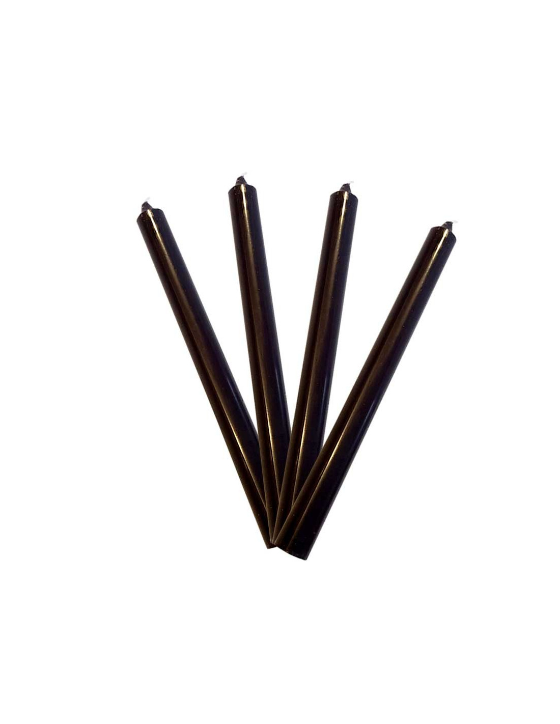 Lot van 4 kaarsen gekleurd in de zwarte massa MH. Ze zijn 25 cm hoog, geven geen parfum of rook af en lekken niet.