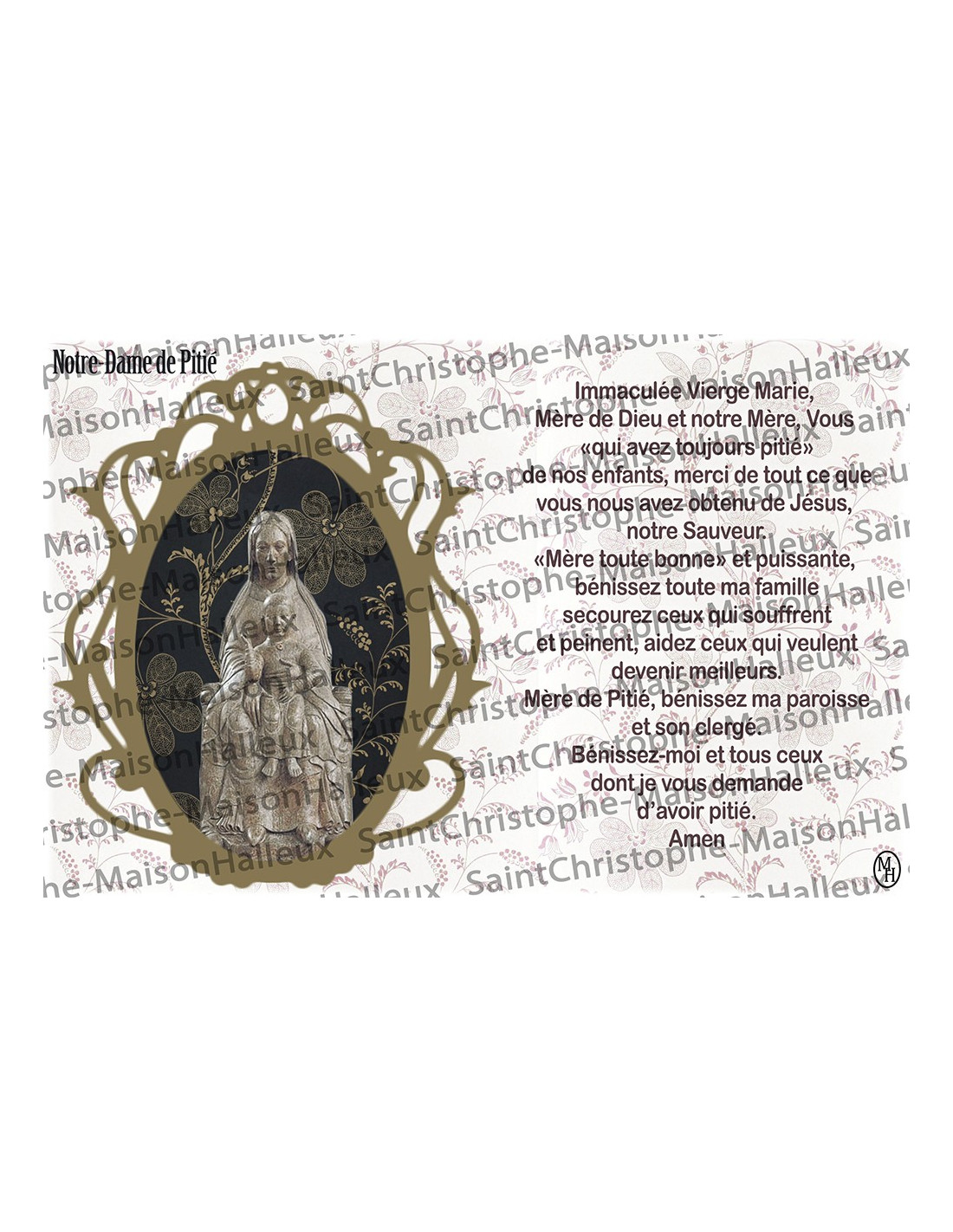 Laatste items in voorraad Kaarten - Medaillekaarten Gebedskaart voor uw patroonheilige - Wonden R9-Blessures € 1,70 Deze kaart is een klein, discreet hulpmiddel om tot uw patroonheiligen te bidden. Ze is nuttig bij verwondingen en geeft in enkele woorden uitleg over de patroonheiligen die helpen om deze te verlichten of te genezen: Sint Lazarus. Op de achterkant staat een kort gebed gewijd aan Jezus en de genade van de patroonheiligen om troost te bieden bij... In winkelwagen