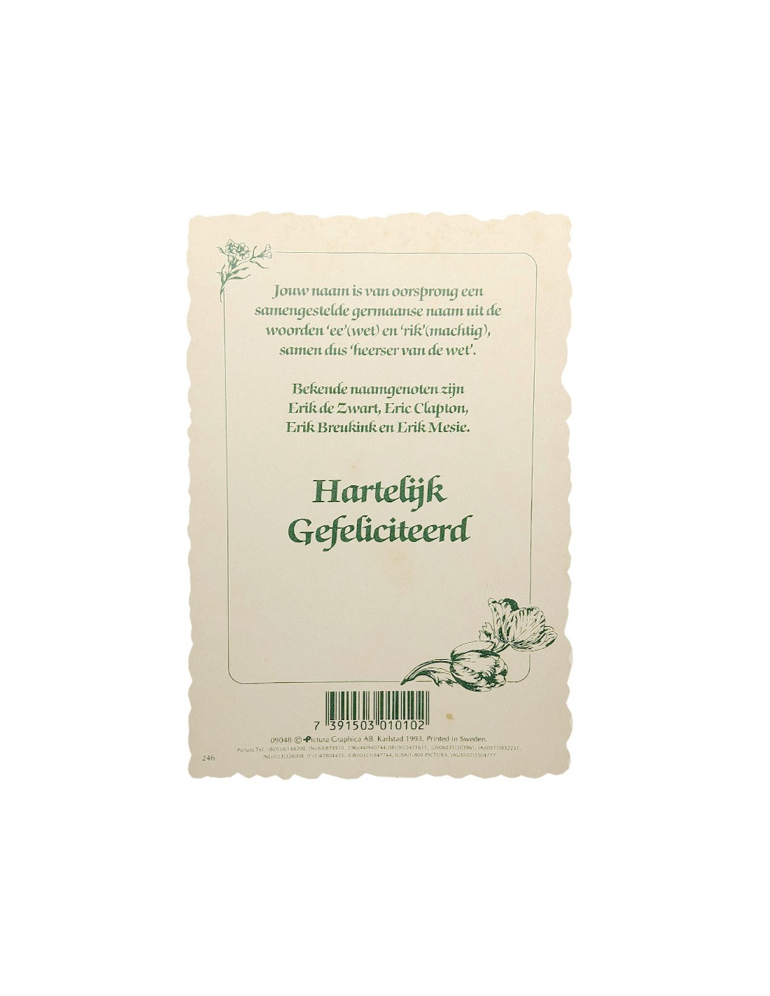 Vintage bloemen ansichtkaart met naam - Erik