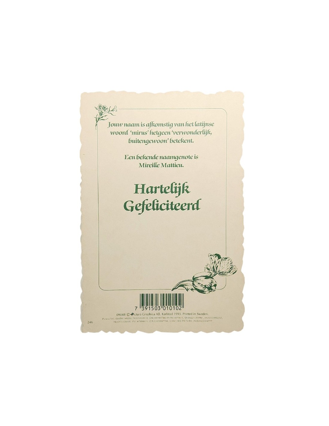 Deze gepersonaliseerde ansichtkaart bevat een voornaam, de etymologische betekenis en een paar beroemde mensen die deze naam dragen. De kaart is gedrukt op hoogwaardig karton met een elegante stansvorm en is versierd met een kleurrijk bloemenkader in vintage-stijl. Perfect voor een eenvoudig, origineel cadeau voor een verjaardag, doop of symbolische boodschap. Een geweldige manier om een knipoog te geven naar de identiteit van een dierbare.