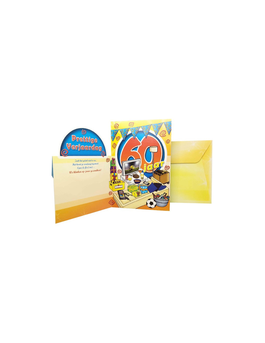 Zestig jaar is een ongelooflijke mijlpaal in het leven! Vier dit met deze retro verjaardagskaart en wens uw dierbare het allerbeste. Vier deze 60 jaar met deze kaart versierd met glitters en een glanzend effect. De uitsnede van de kaart is origineel en benadrukt het aantal jaren dat gevierd wordt. Naast een attent tekstje aan de binnenkant, is er ook ruimte voor een paar persoonlijke woorden. De kaart wordt geleverd met een bijpassende envelop. De tekst is alleen in het Nederlands.