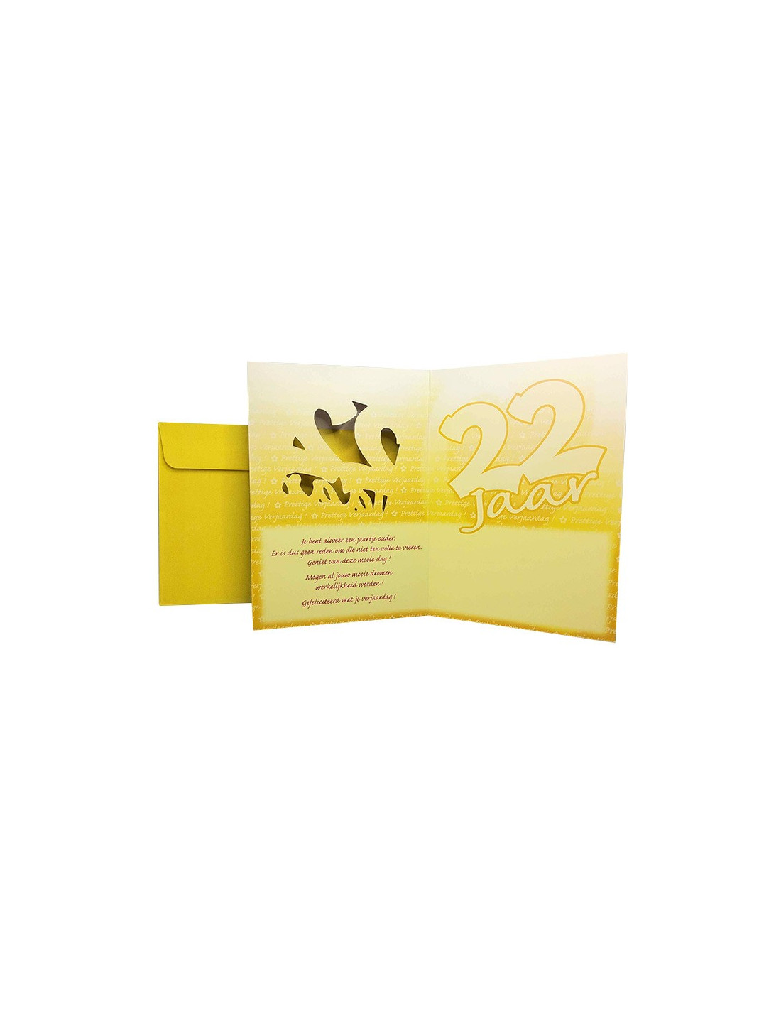 Vier de verjaardag van een dierbare met deze verjaardagskaart in retrostijl. Stuur hem of haar voor zijn of haar 22e verjaardag al uw gelukwensen voor het nieuwe jaar. De wenskaart is versierd met glanzende roze metallic details. De kaart heeft een originele uitsnede, waardoor het aantal jaren dat gevierd wordt extra goed uitkomt. Naast een attent tekstje aan de binnenkant is er ook ruimte voor een paar persoonlijke woorden. De kaart wordt geleverd met een bijpassende envelop. De tekst is alleen in het Nederlands.