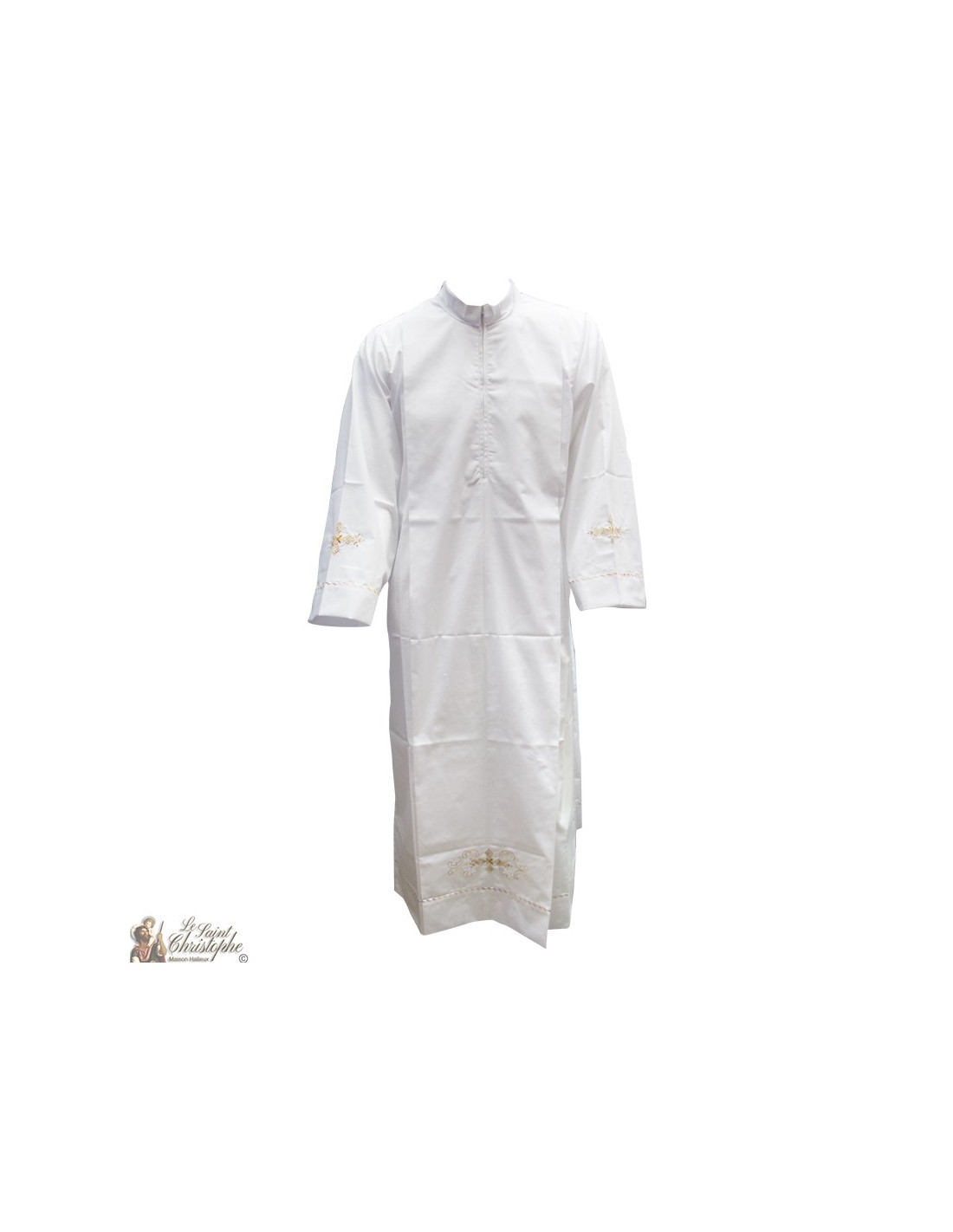 Volwassen maat alb met rits aan de voorkant, voor priester of volgeling.