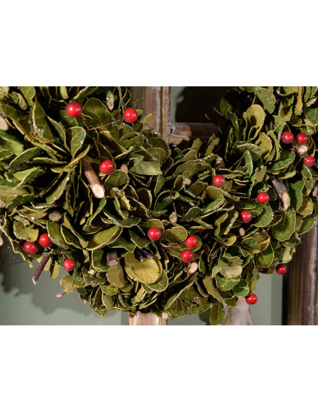 Elke krans is een uniek handgemaakt stuk, dat warmte en verfijning toevoegt aan je kerstdecoratie.
