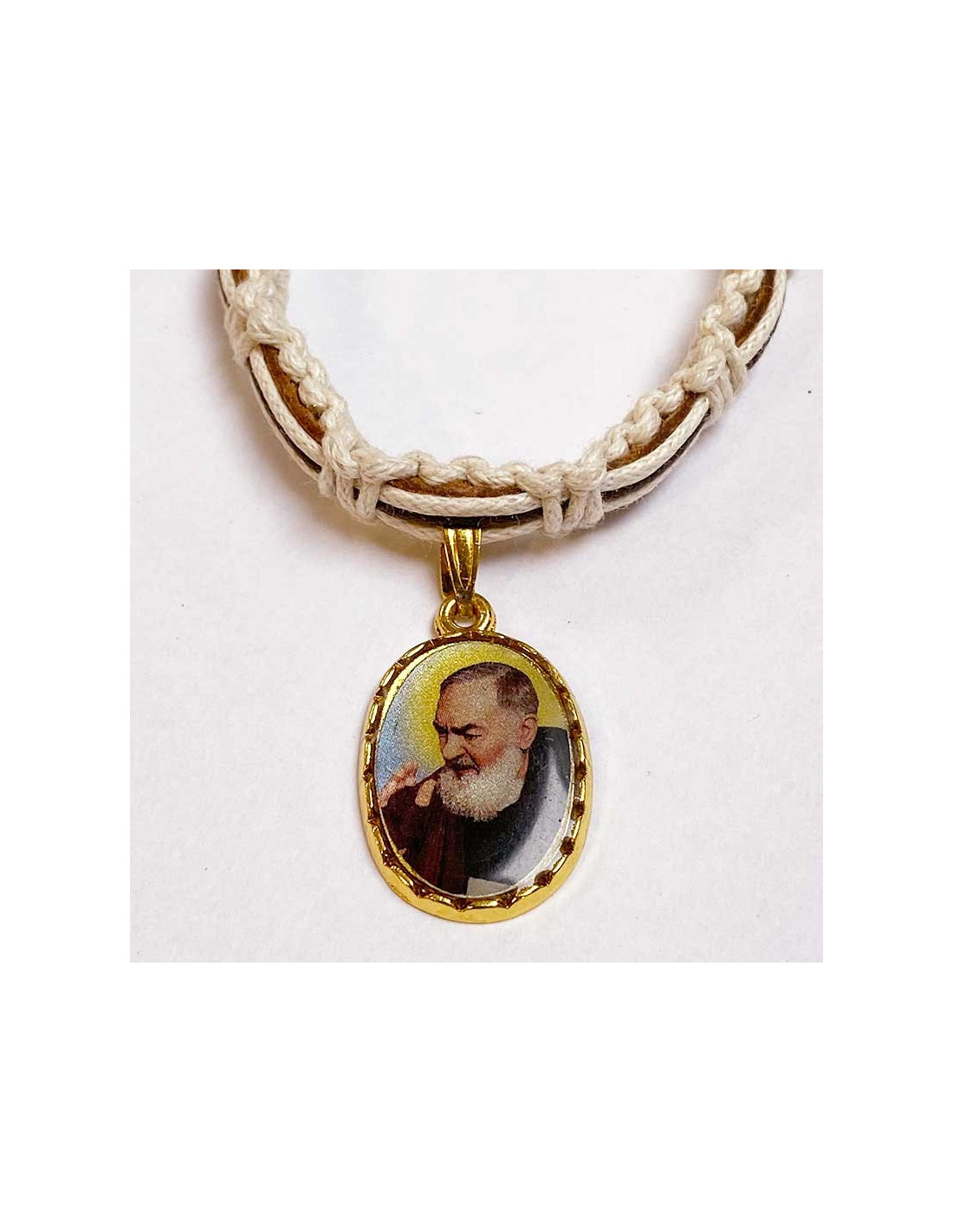 Macramé touwarmband in natuurlijke kleuren, met medaille van Pater Pio, een zeer populaire Italiaanse gebedsheilige. Unisex armband met verstelbare maat, geschikt voor alle polsmaten!