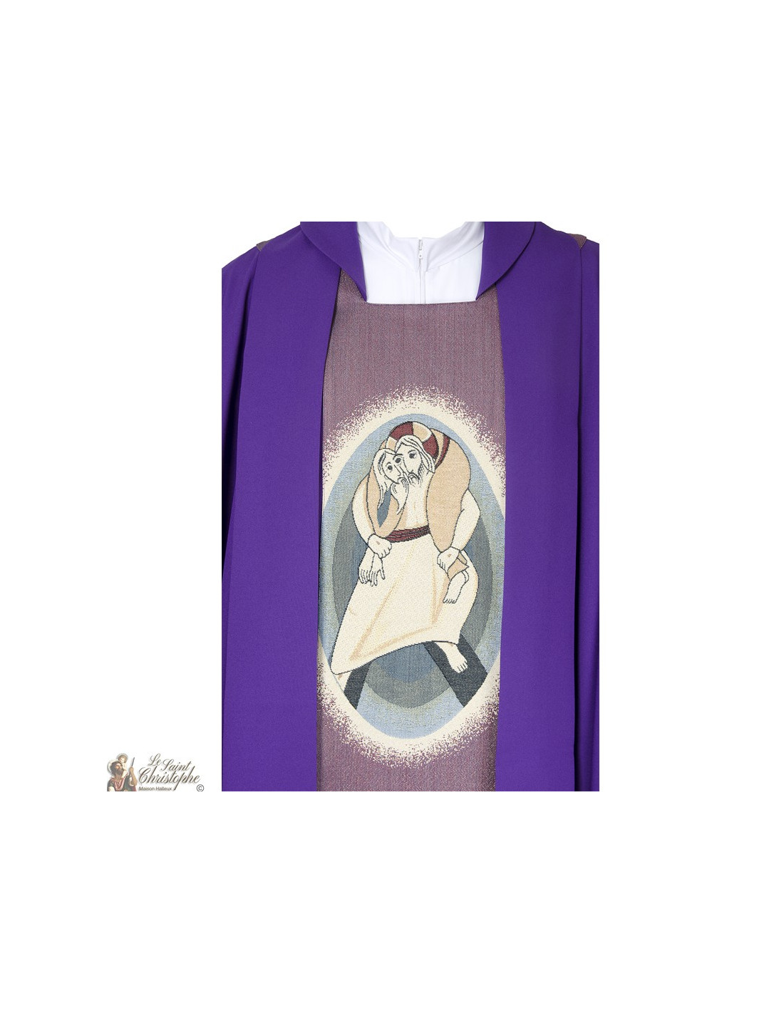 Roze liturgisch kazuifel geborduurd met JHS in gouddraad, met bijpassende stool voor...