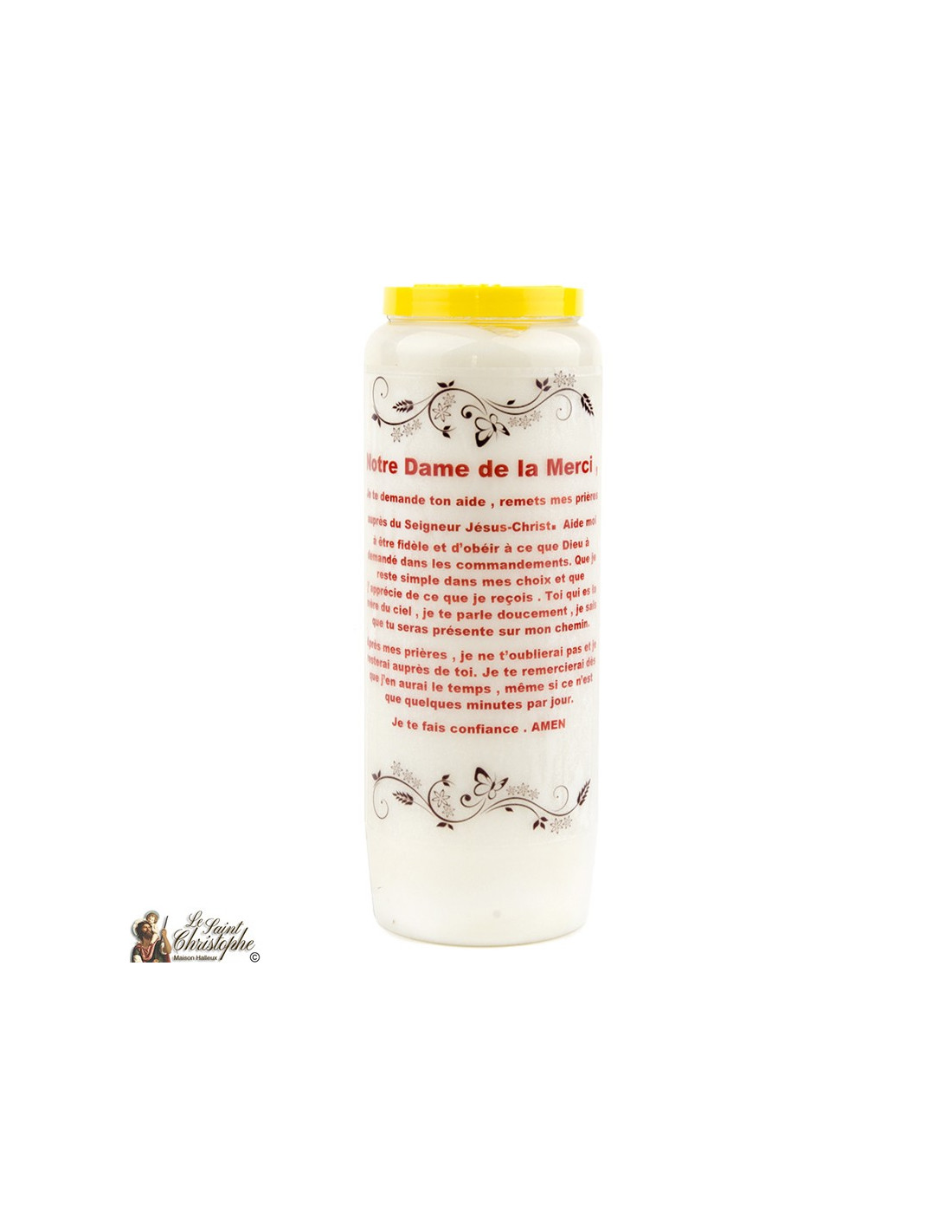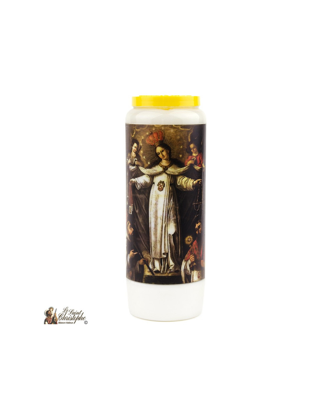 Laatste items in voorraad Met foto's en gebeden Noveenkaarsen voor Sint Christoffel - doos van 20 stuks 5430001266955 € 65,00 Witte noveenkaars met afbeelding van St. Christoffel en gebed aan hem opgedragen.Ononderbroken branden gedurende 9 dagen.Gemaakt van plantaardige olie.Afmetingen : 6 x 18 cmGewicht : 520 grDoos van 20 stuks In winkelwagen