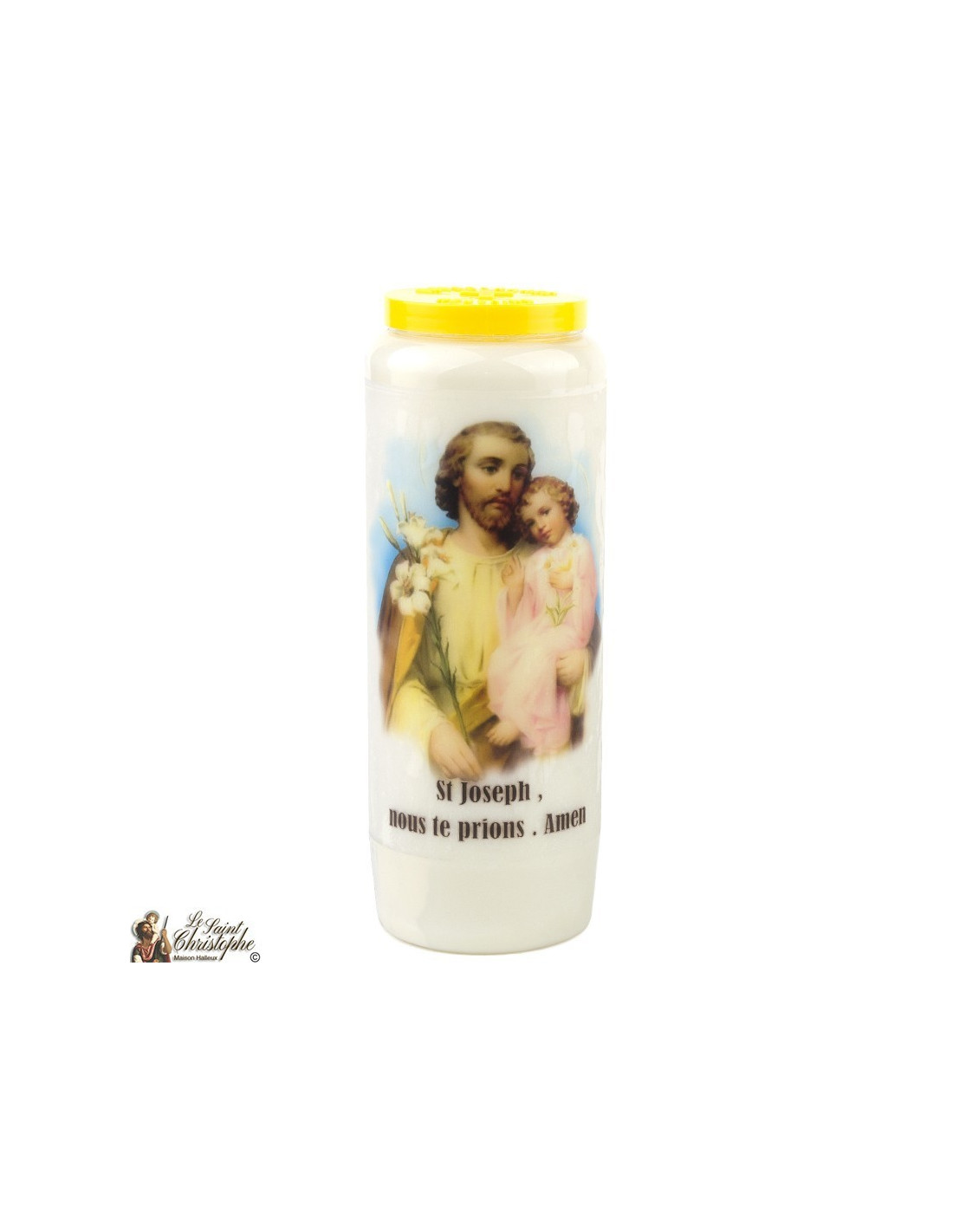 Plant een novenakaars met een beeld van de heilige Jozef en een gebed dat aan hem is opgedragen.