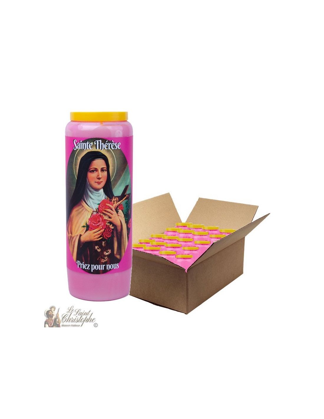 Roze Novena Kaars voor Saint Thérèse of Lisieux - doos 20 stuks