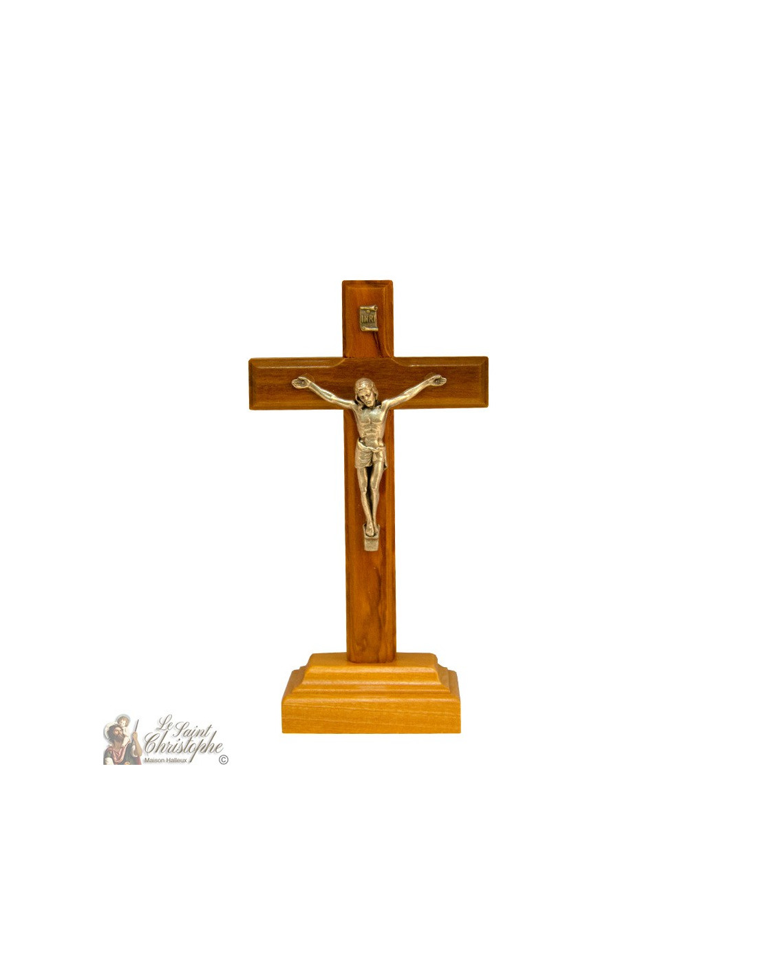 Dit kruis op een sokkel is gemaakt van olijfhout en de Christusfiguur van zilverkleurig metaal. De beeltenis is delicaat bewerkt en steekt mooi af tegen het kruisbeeld. Olijfhout is zeer herkenbaar door zijn lichtgekleurde essence en de lichte geur die ermee gepaard gaat. Er wordt gezegd dat het vele symbolische betekenissen heeft, waaronder onsterfelijkheid, vrede, overvloed en voorspoed.