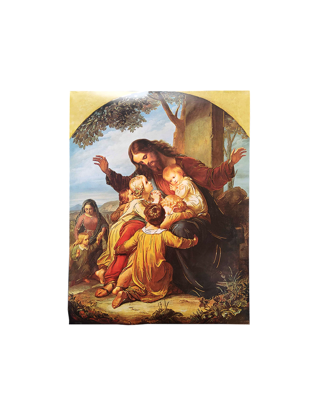 Breng zachtheid, geloof en licht in huis met deze prachtige Poster van Jezus met kinderen. Deze scène symboliseert de liefde en bescherming van Christus voor de kleintjes.