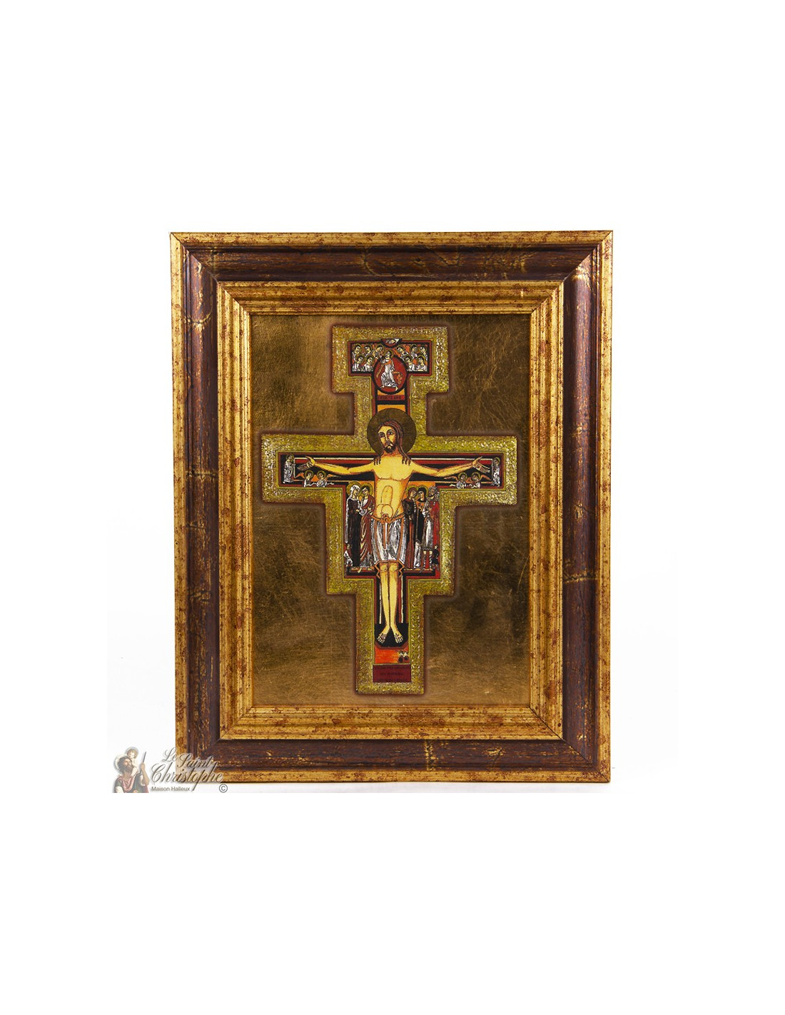 Icoon van het kruisbeeld van San Damiano, ook bekend als het kruis van Sint Franciscus, met lijst. Dit kruis wordt zo genoemd omdat de heilige Franciscus van Assisi zich uitgedaagd voelde door Christus terwijl hij ervoor mediteerde.