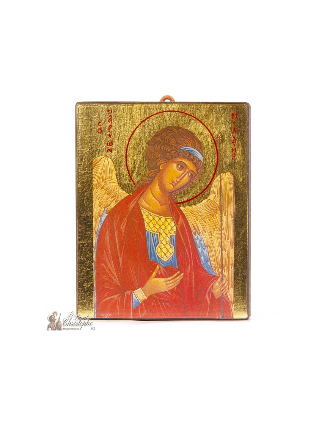 Sint-Michaël is een van de meest vereerde aartsengelen in het christendom. Leider van de hemelse legers, verdediger tegen het kwaad, hij is degene die de draak verslaat in de Apocalyps. Dit Byzantijnse icoon stelt hem voor in al zijn engelachtige adel, drager van licht en gerechtigheid. Het is geschilderd volgens de orthodoxe traditie en heeft een sterke spirituele uitstraling. Het is ideaal voor het aanroepen van goddelijke bescherming en het bevestigen van de overwinning van het goede op de duisternis.