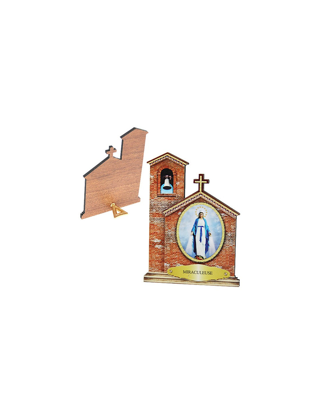 Breng een rustgevende spirituele sfeer in huis met dit staande kader van de Wonderdadige Maagd Maria, vormgegeven als een kerk. Dit religieuze object nodigt uit tot gebed, bezinning en dagelijkse stilte.