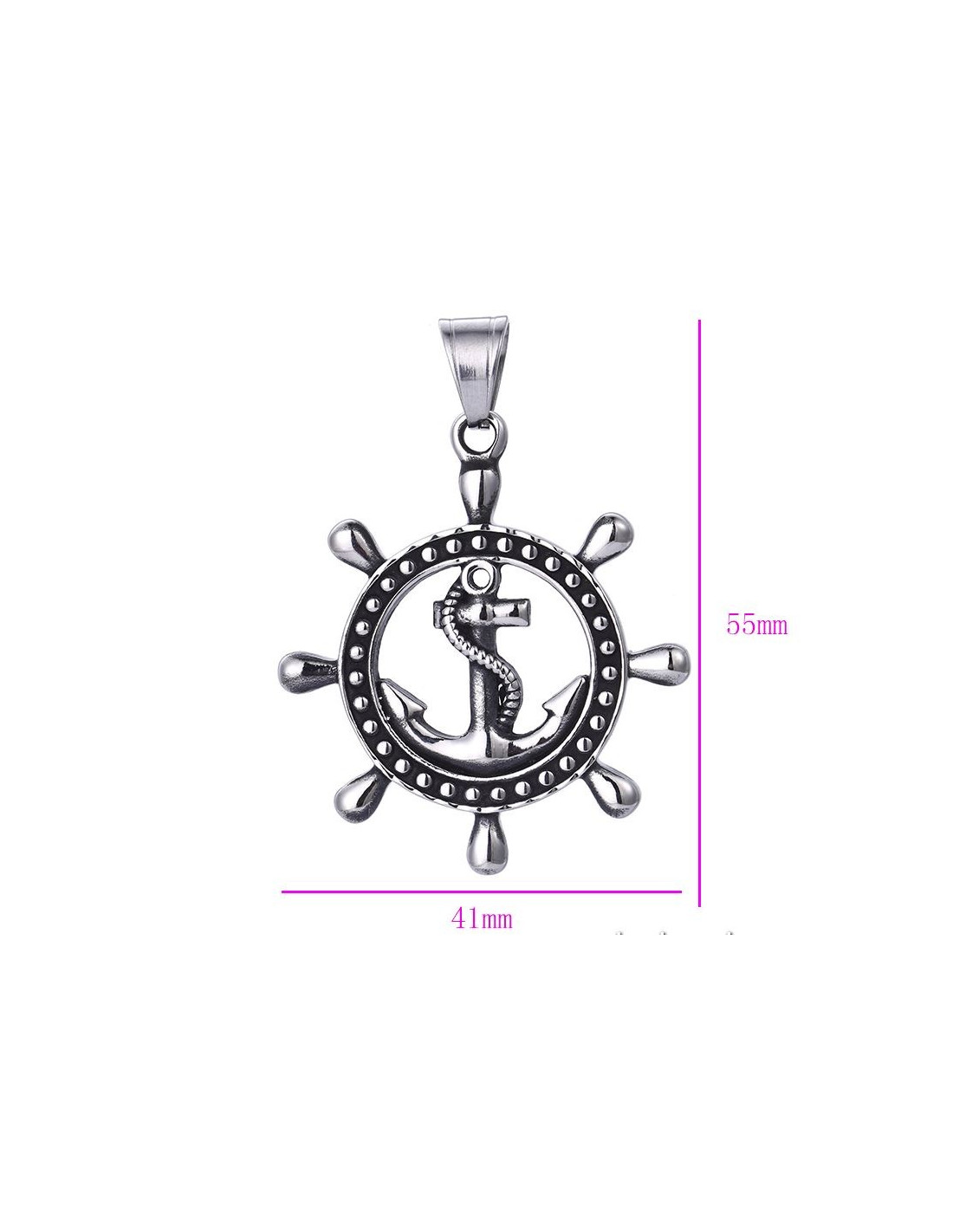 Deze hanger van roestvrij staal nodigt uit tot reizen en ontsnappen! Het hart van dit medaillon, in de vorm van een roer, is een zeeanker versierd met een touw. Het geheel is mooi zilver, helder, versterkt door een zwarte vernislaag op het roer, die het accentueert.