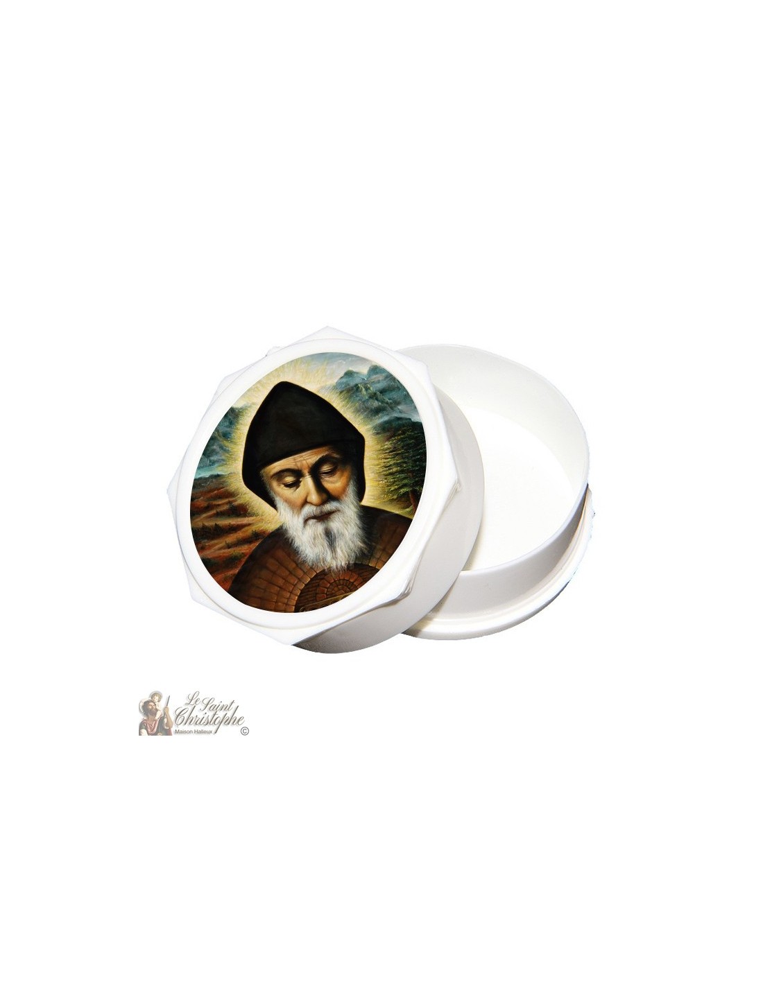 Plastic doos die een rozenkrans kan bevatten, tien, gastheren.....