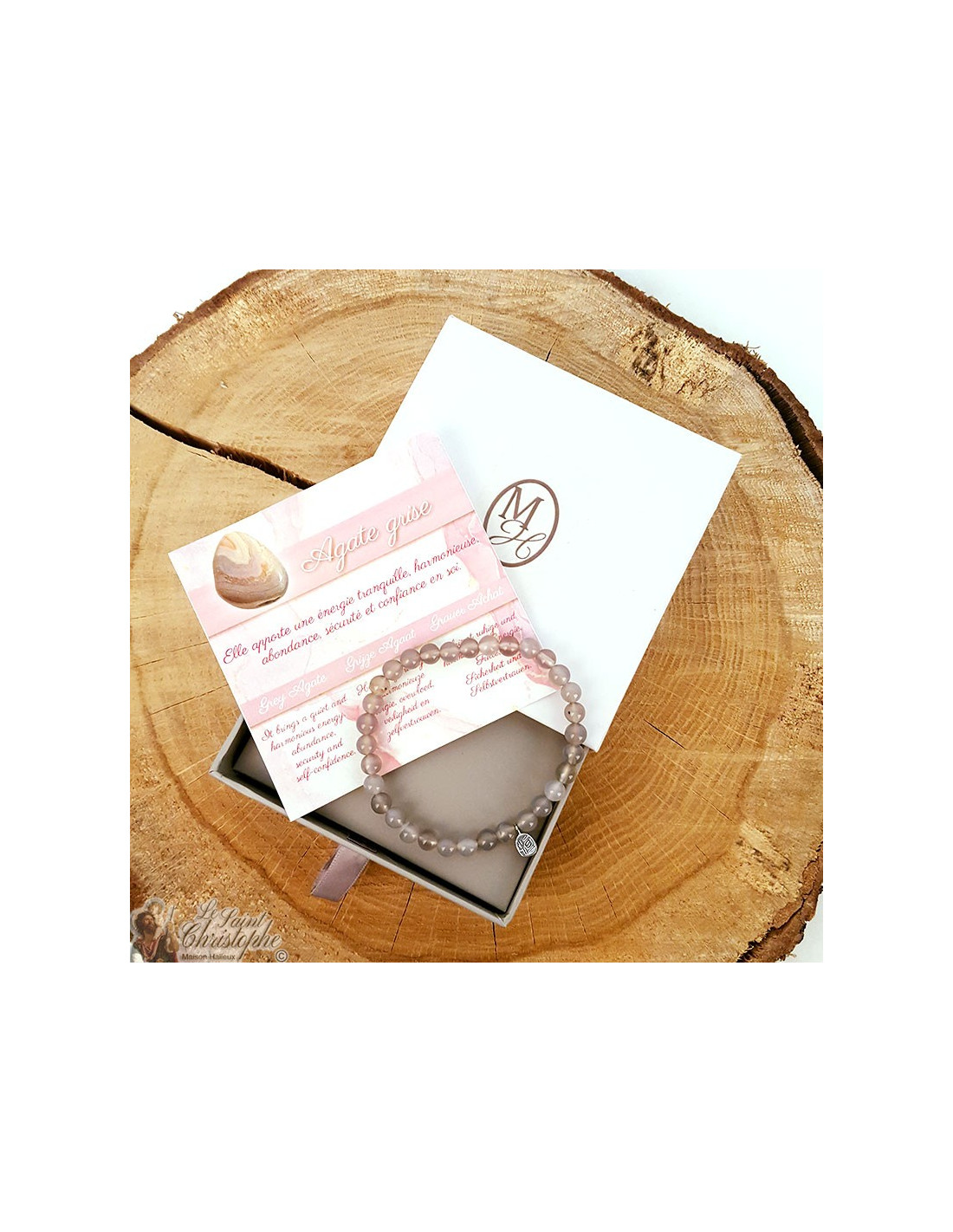 Met zijn prachtige grijstinten, licht gekleurd van bruin tot blauw, is grijze agaat een steen die verbonden is met het sacrale chakra. Volgens de principes van de lithotherapie helpt het de concentratie te versterken door het lichaam en de geest energie te geven met een harmonieuze kracht die vermoeidheid op afstand houdt. Het kan ook stress verlichten en je leven in evenwicht brengen, zodat je ontvankelijker kunt zijn voor liefde, vrede en overvloed en je zelfverzekerd en veilig kunt voelen in je dagelijks leven.