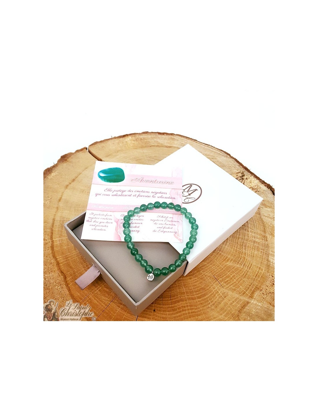 Met zijn delicate groene tinten is aventurijn een steen die verbonden is met het hartchakra dat de emoties kalmeert en in evenwicht brengt door negatieve emoties die ons afremmen af te weren. Zo kalmeert het de geest en bevordert ontspanning, loslaten en onvoorwaardelijke liefde. Het beschermt de drager ook tegen negatieve energieën of mensen die ons moreel en onze energie kunnen aantasten. Met een heldere geest maakt aventurijn een betere kennis van zichzelf mogelijk, draagt bij tot een betere autonomie en een grotere creativiteit door onze horizon te verruimen. Volgens de principes van de lithotherapie is aventurijn op fysiek niveau nuttig voor de spieren in geval van pijnen en pijn en om het hart en de longen te versterken.