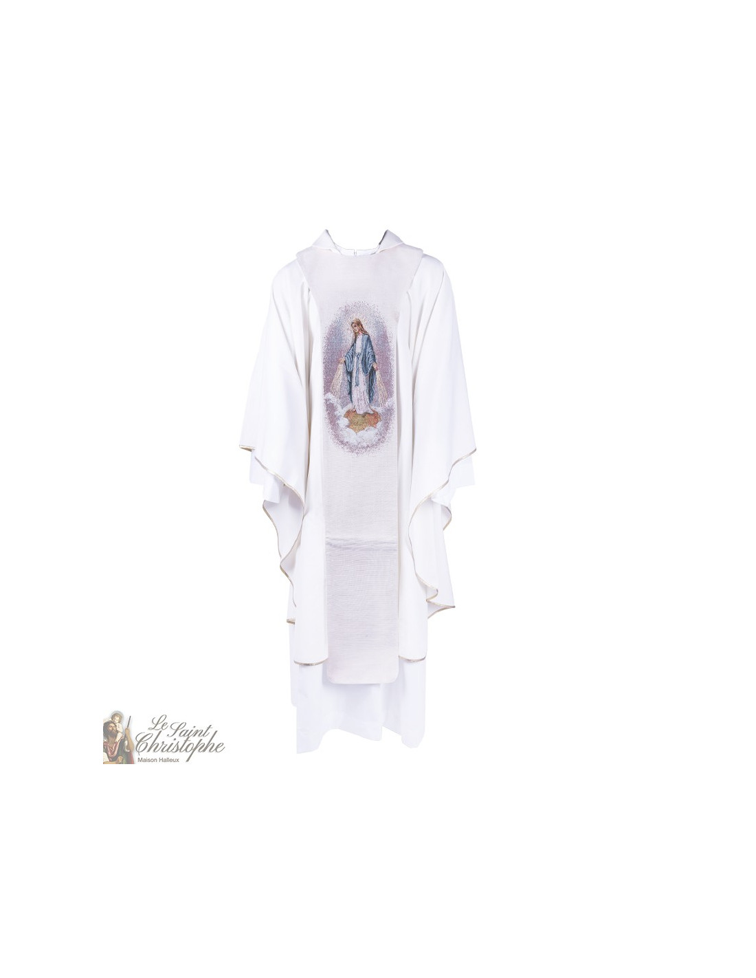 Stokken Maagd van de arme van Banneux geborduurde priester stal ND 14971-2200000011305 € 299,00 Priesterstola geborduurd met de Vierge des Pauvres de Banneux Notre-Dame aan de rechterkant en een fleur-de-lys aan de linkerkant. Het borduurwerk is geweven in de stijl van Brugse wandtapijten. De lengte van de rug tot het einde van het paneel is 142 cm. De lengte van de hals tot aan de knie is 106 cm. In winkelwagen
