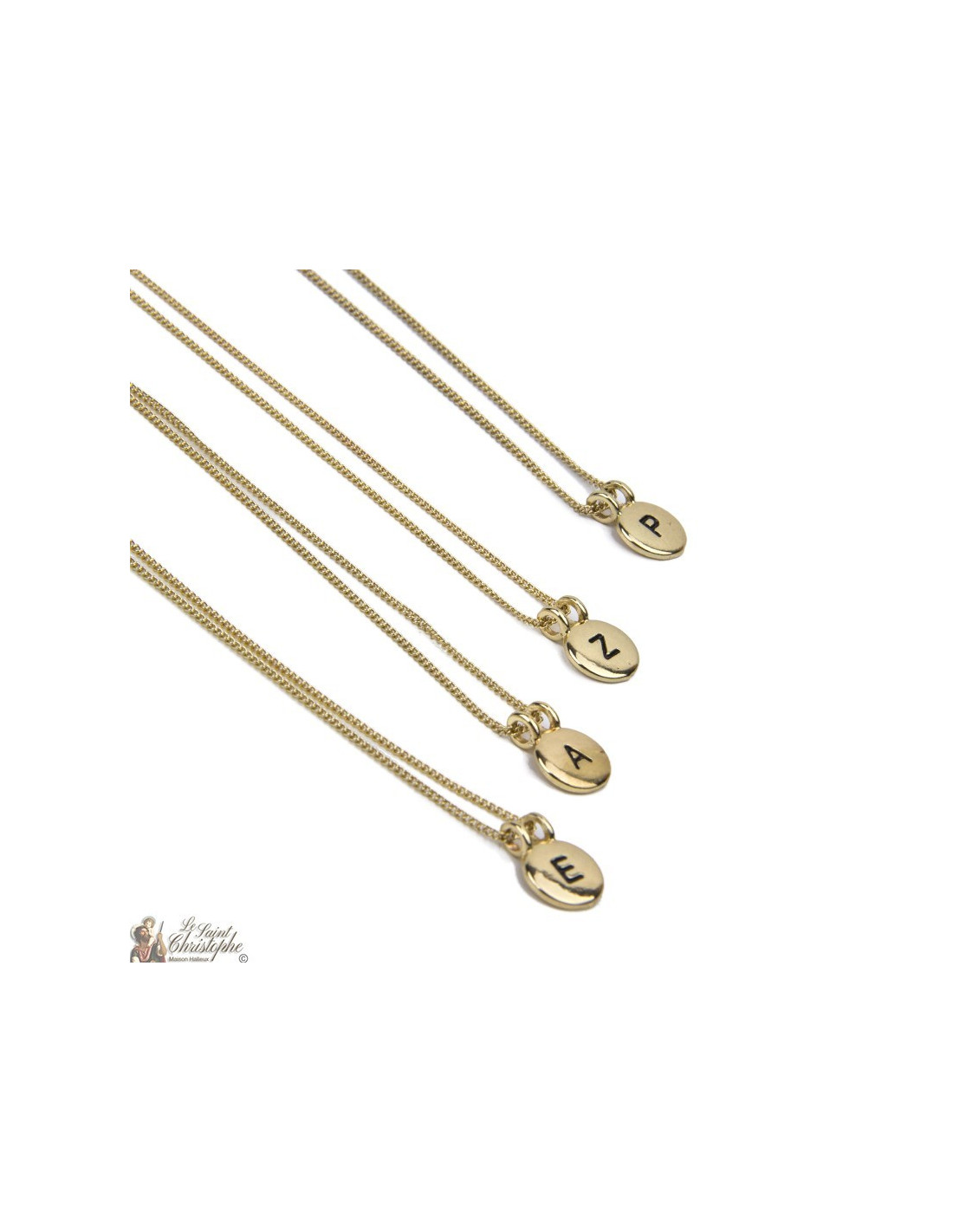 Ketting met ronde hanger in verguld goud. De hanger is gesigneerd met de beginletter S, in een glanzende zwarte vernis voor een mooi contrast. Een elegant geschenk!