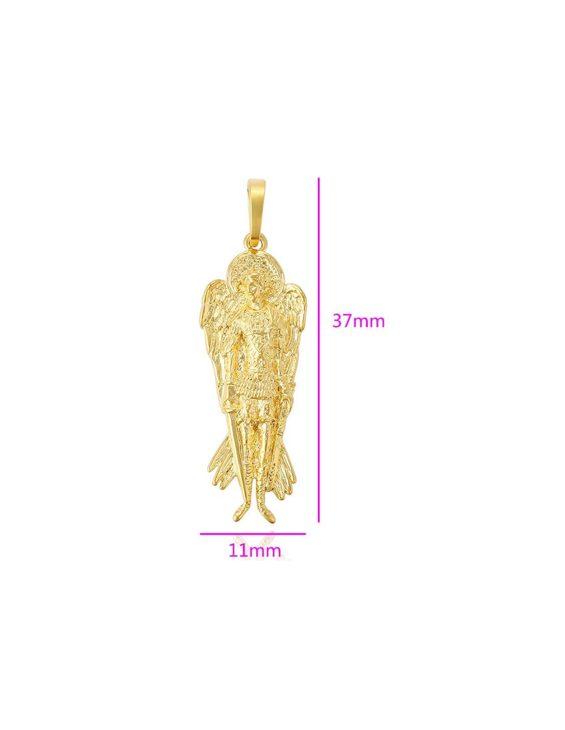 Deze hanger van milieukoper en verguld is een symbool van bescherming van de Engelen. Met de beeltenis van de aartsengel Sint Michaël weert hij negatieve en schadelijke energieën af. De hanger is fijn bewerkt, zeer gedetailleerd.